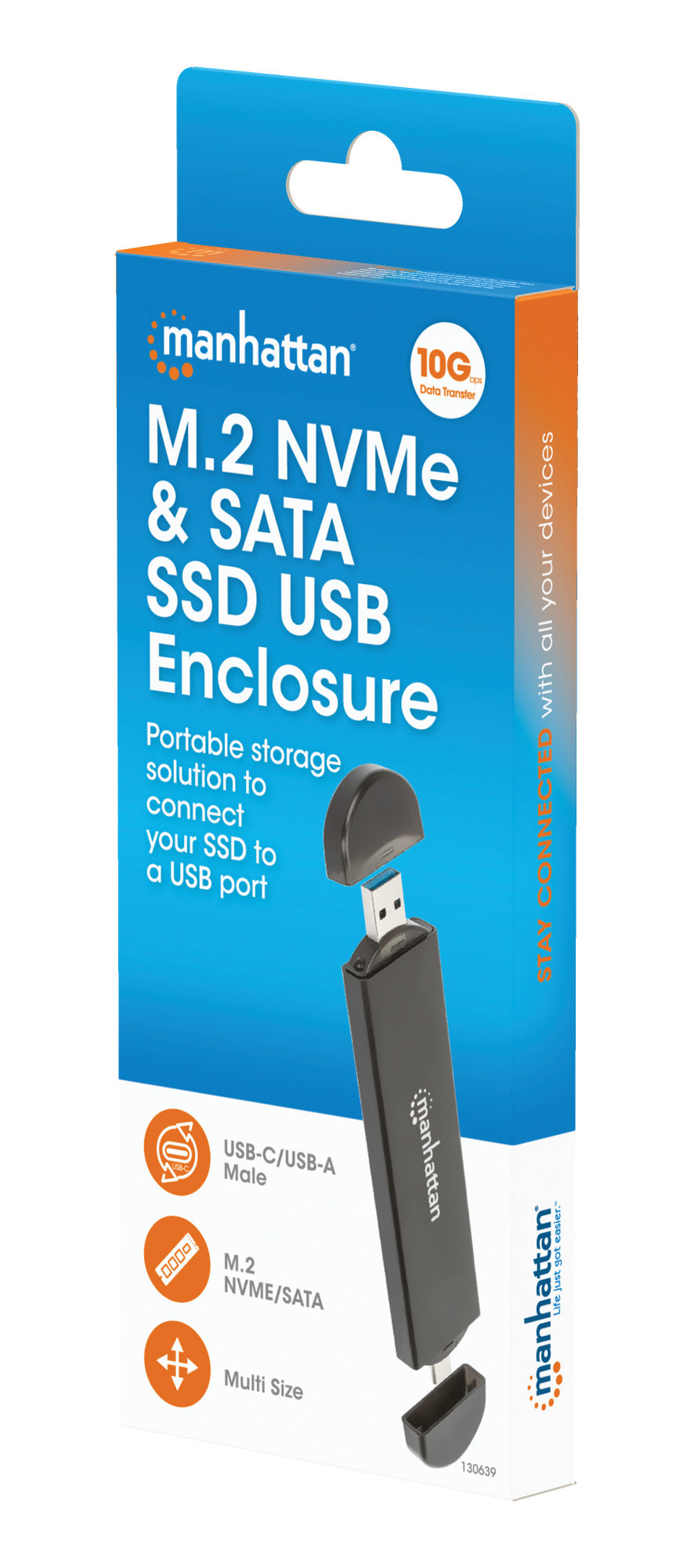 - Connectez facilement votre SSD M.2 NVMe ou M.2 SATA à un port USB