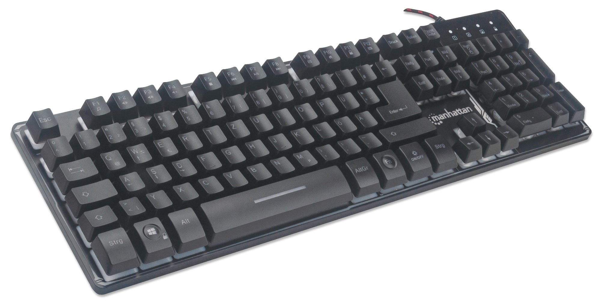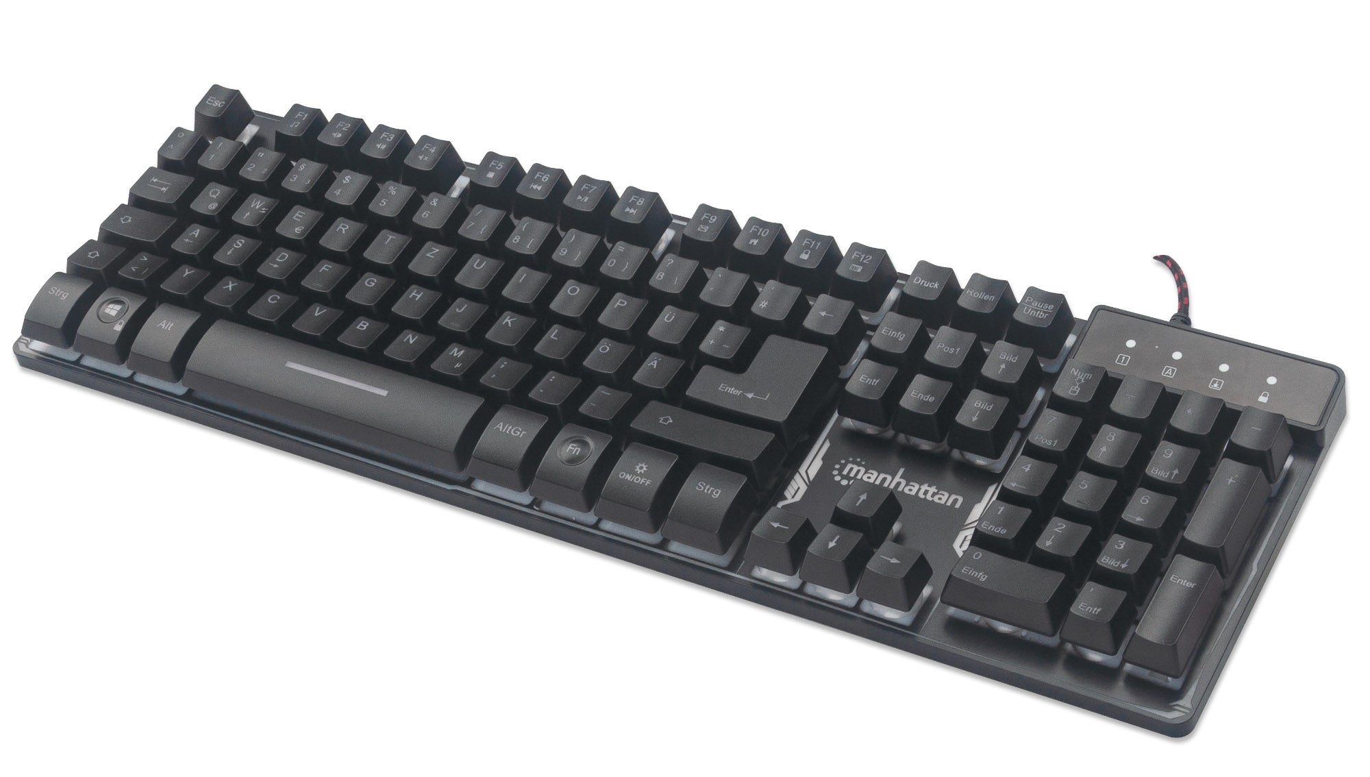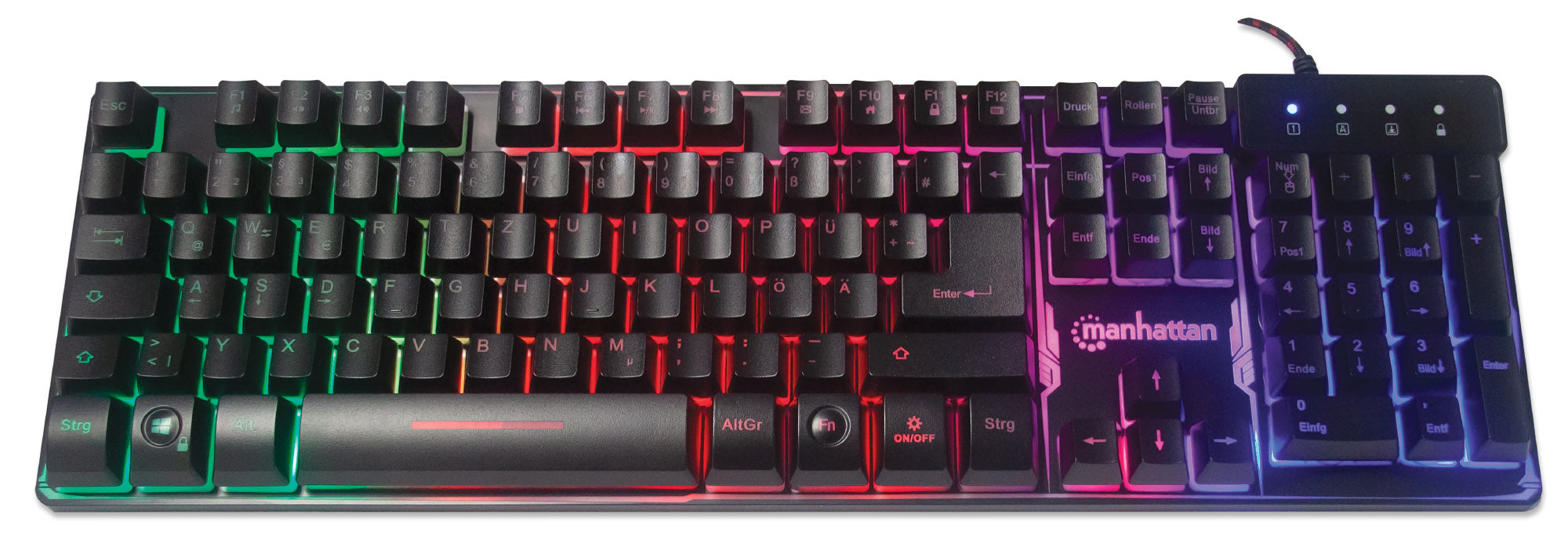12 touches de fonction, USB, rétroéclairage LED arc-en-ciel, 19 touches anti-ghosting, indice IPX4 (résistant aux éclaboussures), noire