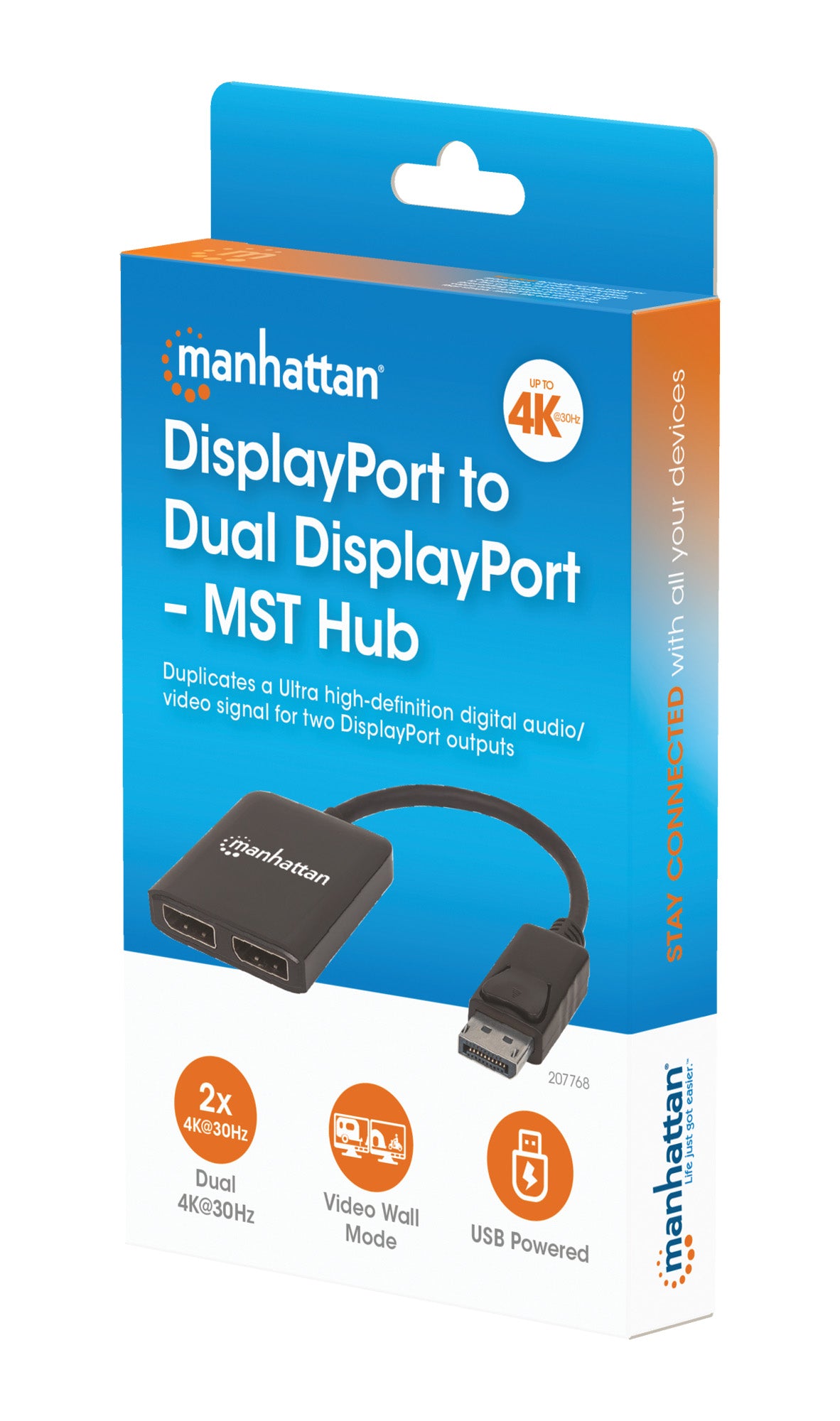 • Le mode MST crée un mur vidéo pour une expérience plus immersive, en utilisant deux écrans - avec des résolutions allant jusqu'à 3840x2160 à 30 Hz - comme un seul et même écran