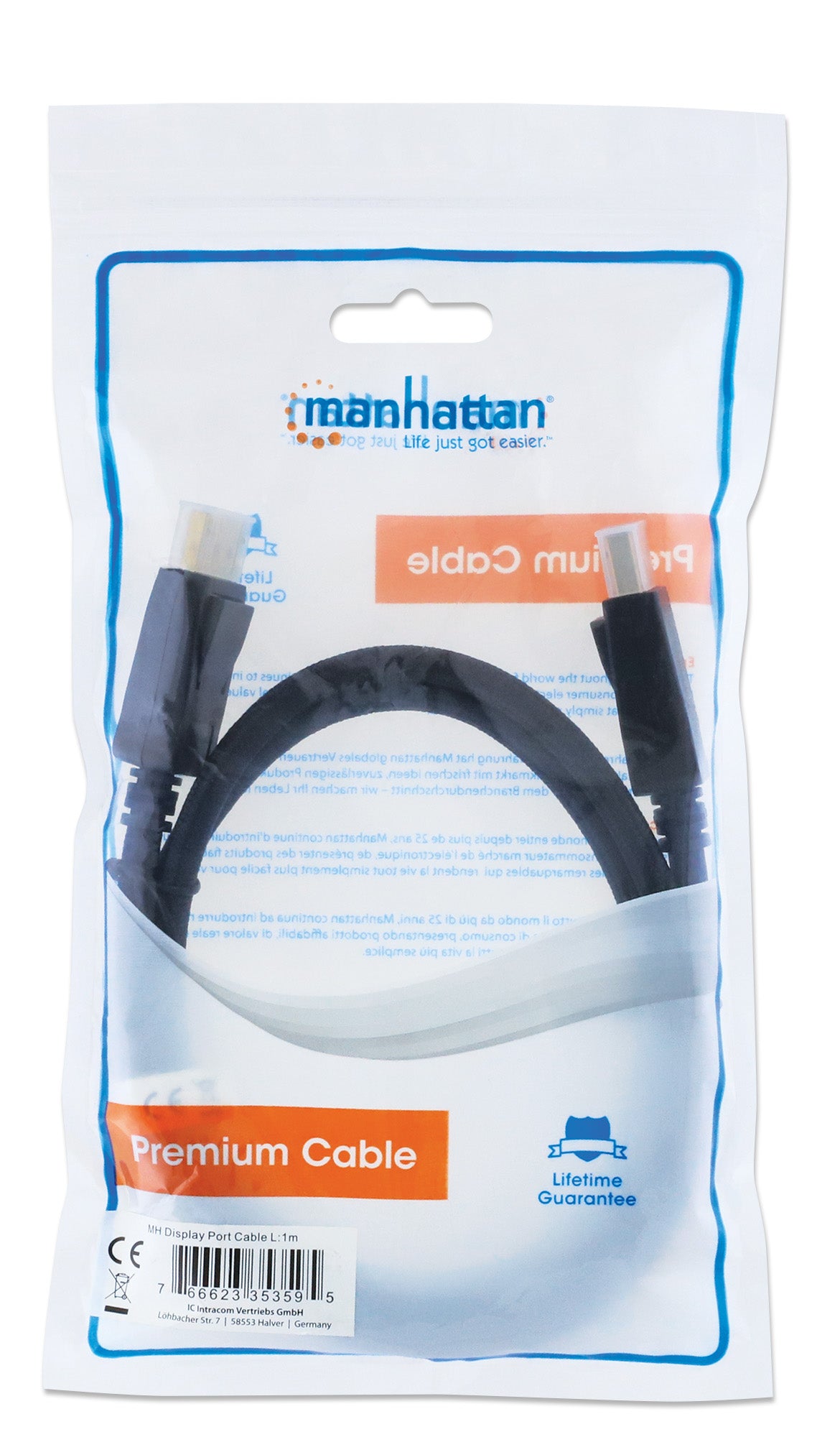 DisplayPort Mâle vers Mâle, 1 m, compatible 4K à 144Hz, HDR, Contacts plaqués or, conception tressée avec loquets, noir