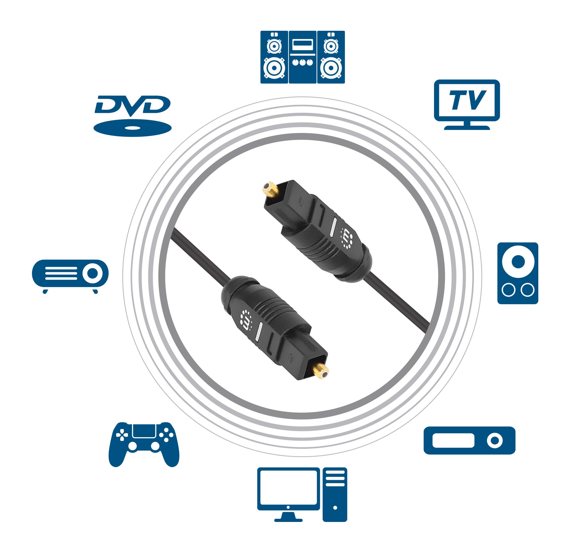 - Idéal pour tous les appareils dotés d'une interface optique, tels que les récepteurs AV, les (pré)amplificateurs, les barres de son, les systèmes de sonorisation, les téléviseurs, les PC, les DAC, la PlayStation® (PS3/PS4/PS4 Pro), la Xbox® (One/360), etc.