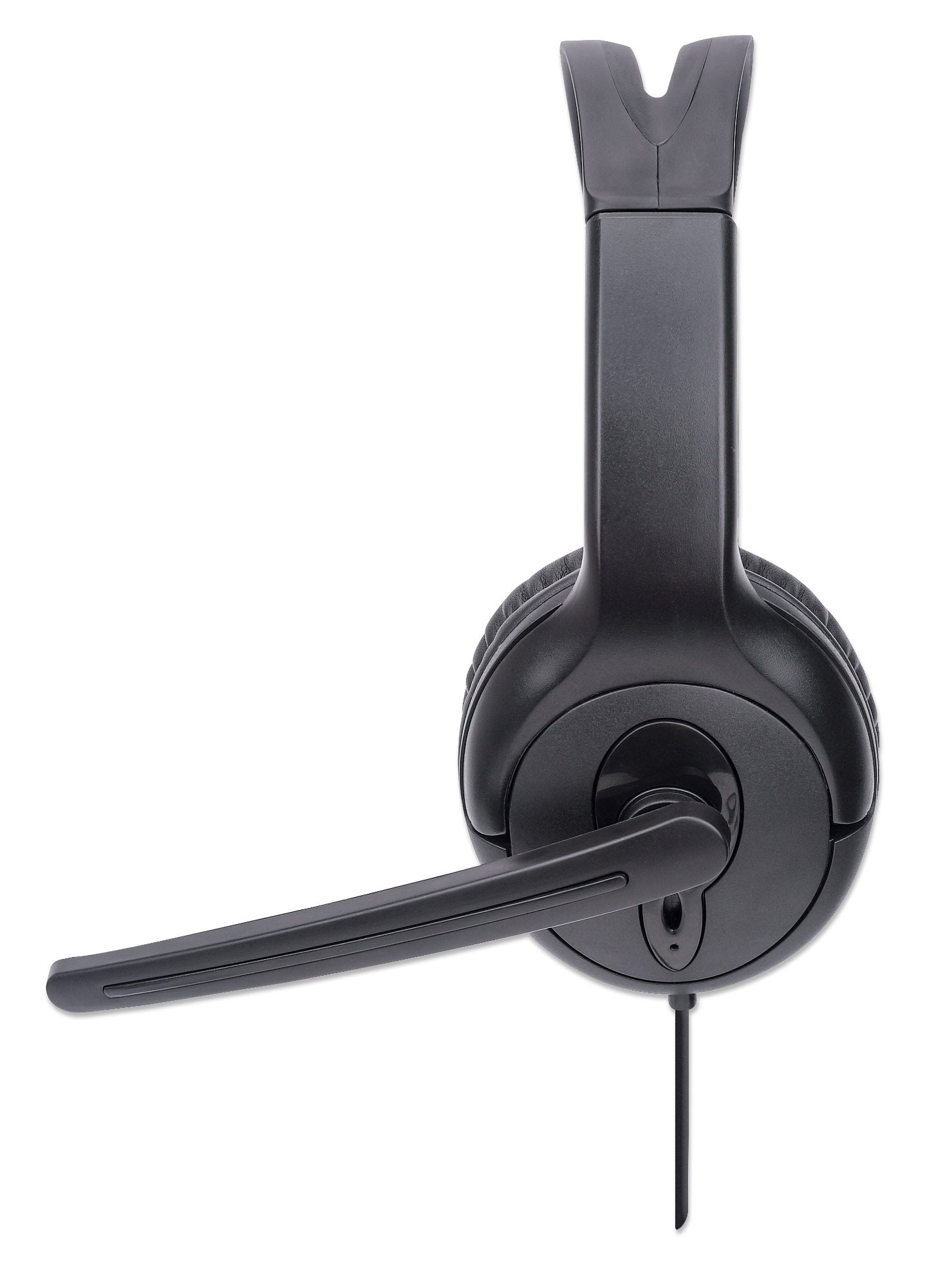 Design unilatéral recouvrant l’oreille, filaire, prise USB-A, contrôle du volume, microphone réglable, noir, boîte de détail