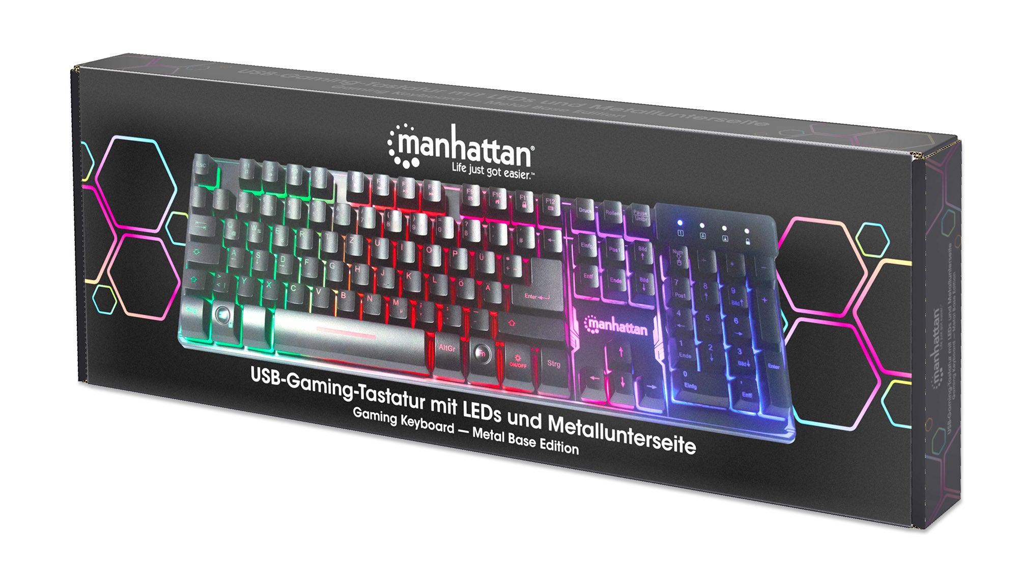 12 touches de fonction, USB, rétroéclairage LED arc-en-ciel, 19 touches anti-ghosting, indice IPX4 (résistant aux éclaboussures), noire