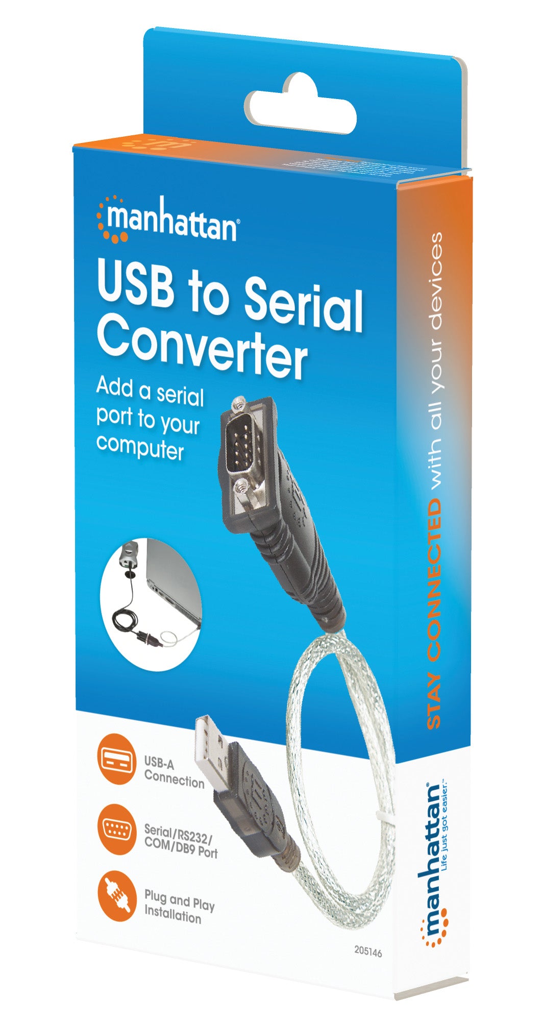 Connectez facilement vos périphériques série à l'aide d'un port USB.Aujourd'hui, la plupart des ordinateurs modernes sont dépourvus de ports RS232, ce qui complique l'utilisation des périphériques et des dispositifs de communication. Grâce à son port RS232 série, le convertisseur série USB MANHATTAN développe facilement un même port USB 1.1 pour connecter et prendre en charge plusieurs modems série, analyseurs de codes-barres, appareils photo numériques, lecteurs de carte ou autres périphériques. Une structure de qualité et une installation facileLes contacts plaqué or et la structure solide offrent une connexion fiable entre l'ordinateur et les périphériques série pour garantir des performances durables. Grâce à sa compatibilité Windows avec toute installation Plug-and-Play et sa capacité de démontage à chaud, vous pouvez utiliser ce convertisseur de façon transparente sans rencontrer de conflits matériels, vecteurs de problèmes et de contrariétés.