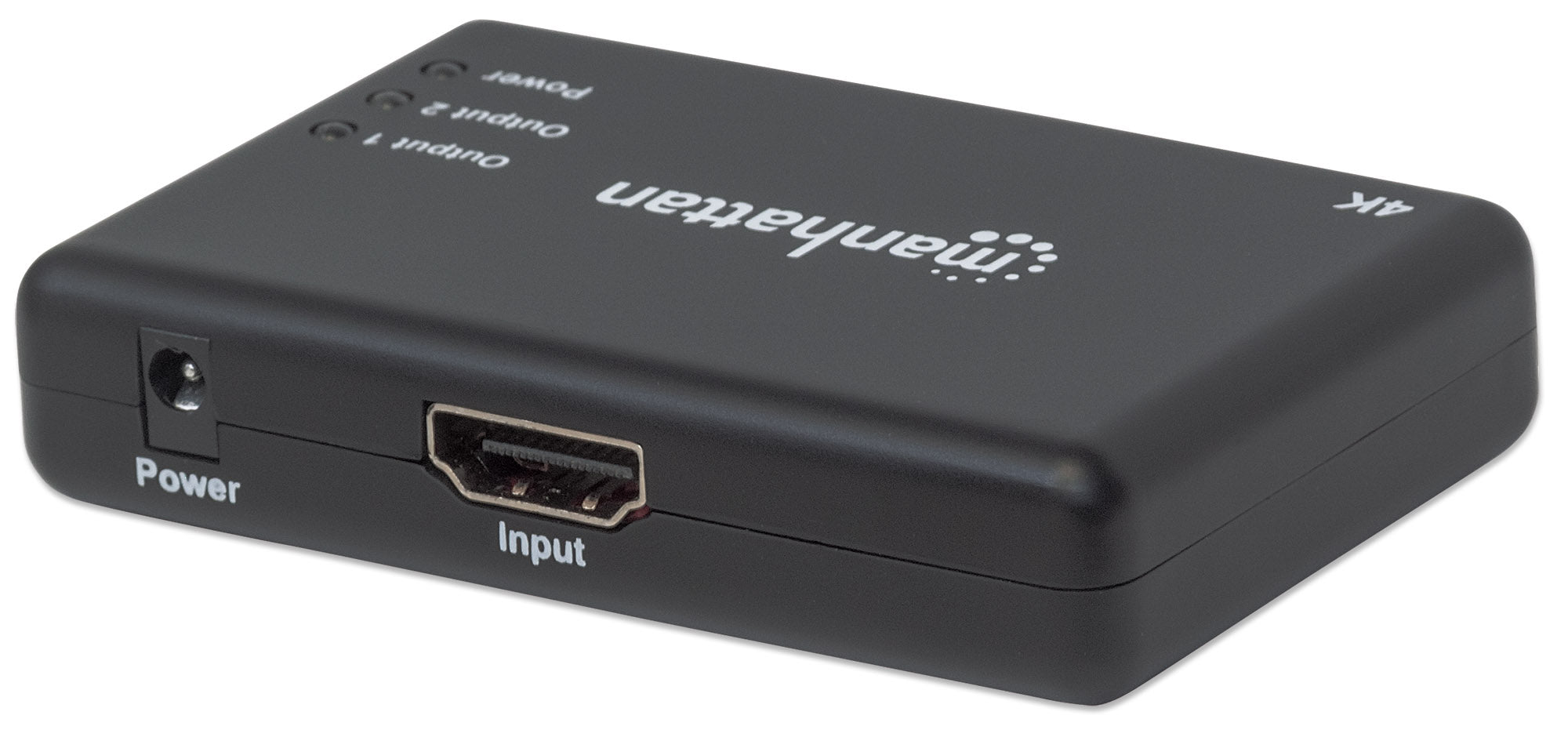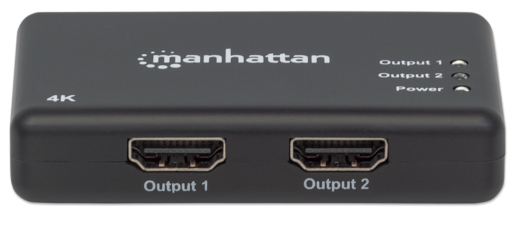Le répartiteur HDMI 4K 2 ports de Manhattan avec amplificateur intégré diffuse un signal HDMI 4K à partir d'une seule source UHD vers jusqu'à deux affichages UHD.