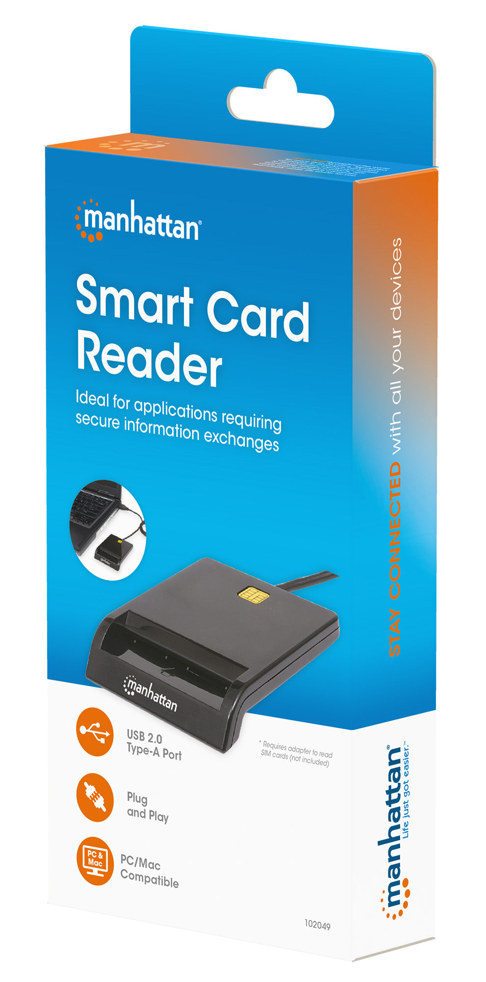 Idéal pour les ordinateurs de bureau et les ordinateurs portables sans lecteurs intégrés, le lecteur de carte intelligente Manhattan s'installe facilement en utilisant n'importe quel port USB. Plug and play avec compatibilité Windows et Mac, il ne nécessite pas d'alimentation externe ni de câbles — juste une simple connexion USB.