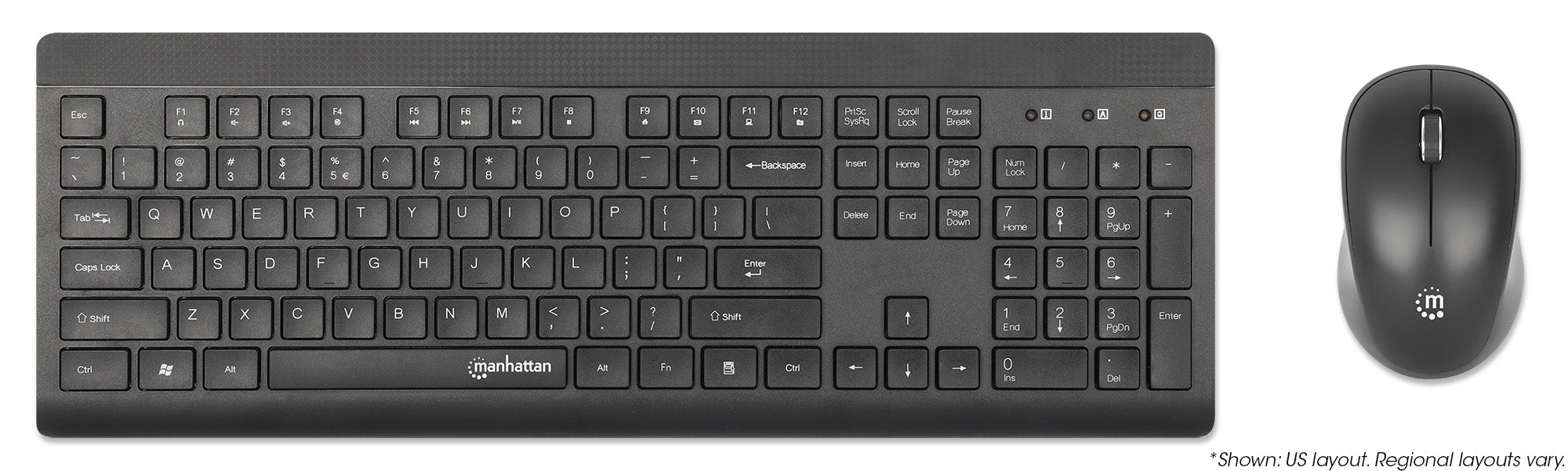Un seul récepteur USB-A Nano pour les deux, clavier sans fil de grande taille avec 12 touches multimédia/fonctionnelles, souris optique ambidextre avec trois boutons et molette de défilement, 1200 ppp, noir