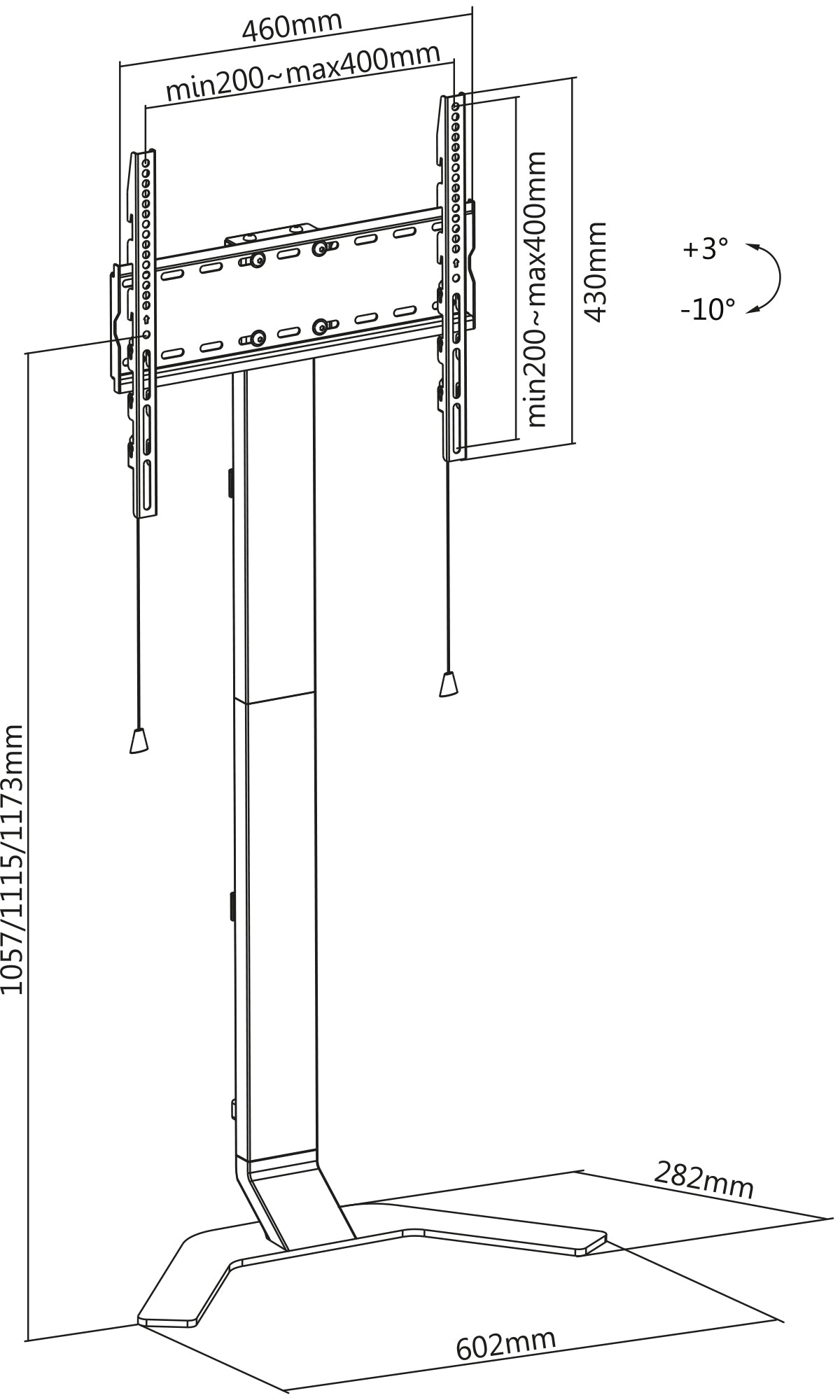 Une construction en aluminium-acier de haute qualité s'adapte universellement aux téléviseurs de 32" à 70" avec des motifs de montage VESA allant jusqu'à 400x400 et est testée en résistance pour supporter des charges allant jusqu'à 40 kg (88 lbs). Optimisez votre vue avec des options d'inclinaison et de réglage en hauteur. Son design élégant lui permet de s'ajuster parfaitement contre un mur, soutenu par une base inclinée pour que la colonne puisse se placer au-dessus des plinthes, vous permettant de rapprocher le support de sol encore plus du mur.