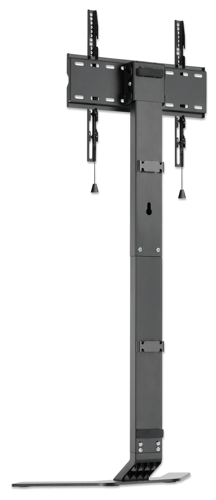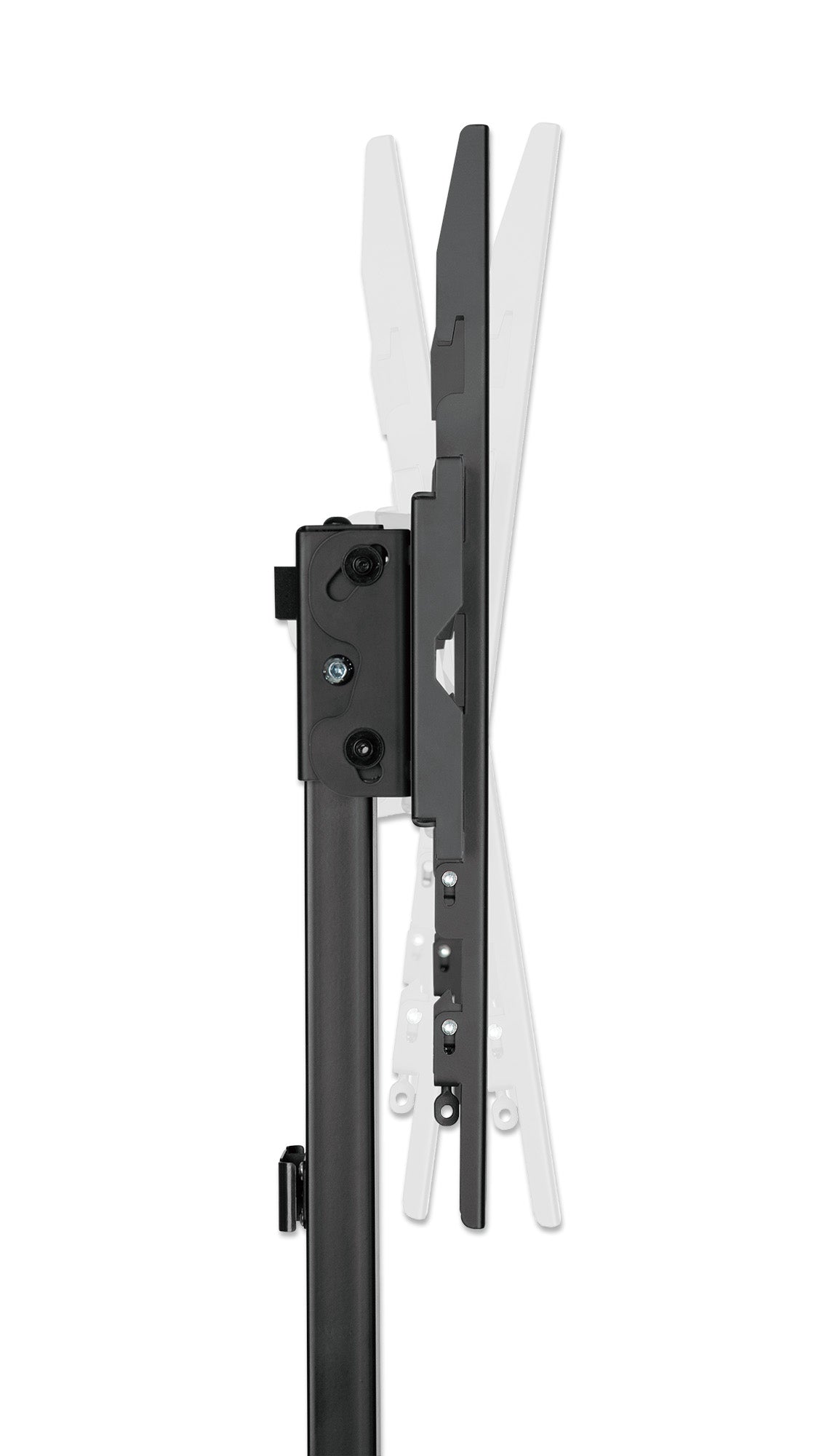 Convient à une TV de 32 " à 70 " jusqu'à 40 kg, angle de bascule de -10 à 3 °, hauteur réglable, utilisation derrière un meuble TV, aluminium et acier, noir