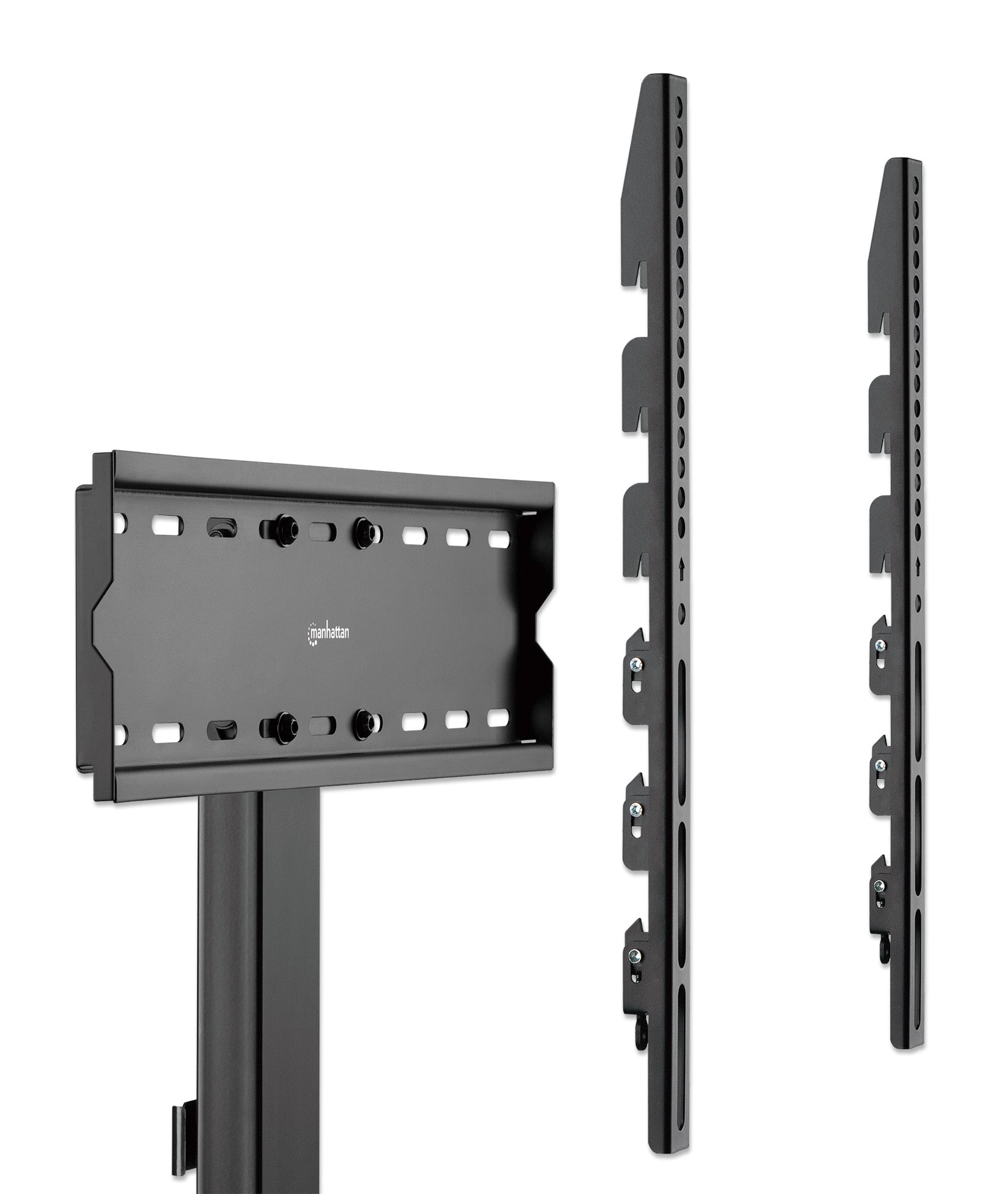 Le support de sol ultra mince pour TV Manhattan vous offre la flexibilité de monter votre écran partout. Laissez vos films vous accompagner - de votre salon à votre patio en été et de retour à votre cheminée en hiver. Contrairement aux supports muraux classiques ou aux supports de table, celui-ci permet même un placement dans un coin – une polyvalence maximale pour les appartements, les salles de conférence et plus encore.