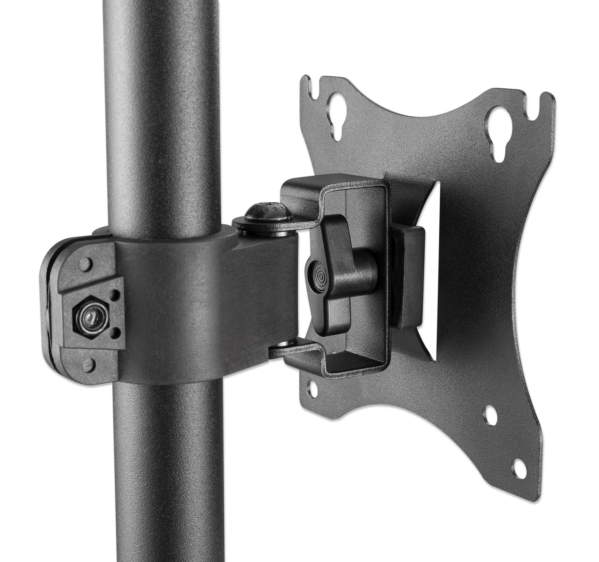 - Pivotant sur +/- 45 °, angle de bascule +/- 10 ° et hauteur réglable sur un mât de 366 mm pour un visionnage optimisé