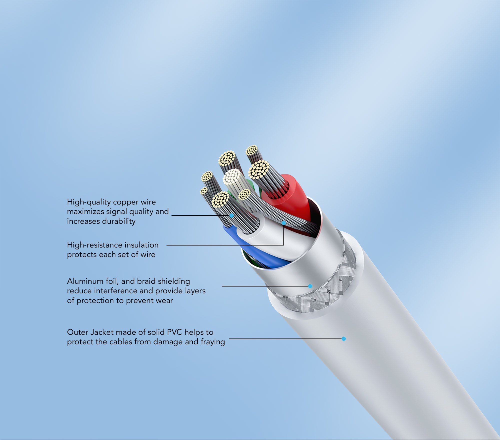 - Câble en cuivre pur avec revêtement en étain pour une meilleure résistance à la corrosion