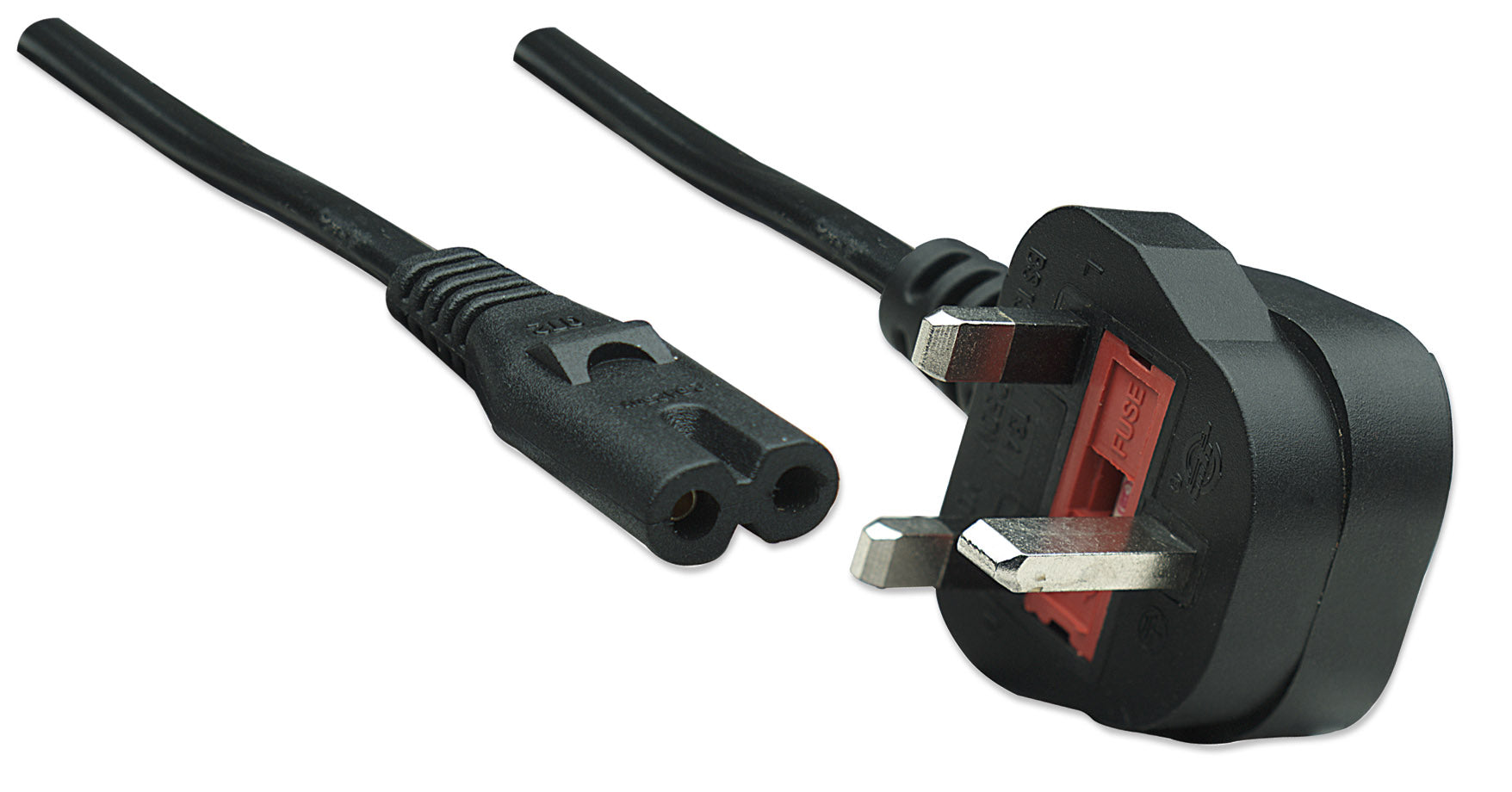 - Connecteur « Figure 8 » IEC 60320 C7 vers connecteur BS 1363, avec fusible 13 A.