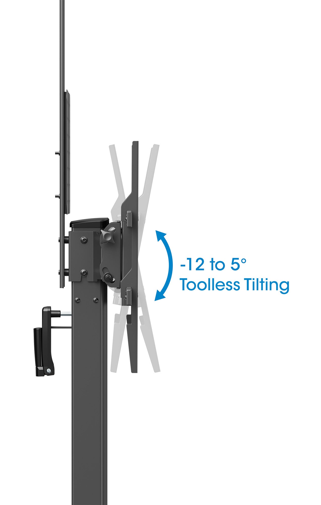 Élevez ou abaissez facilement votre écran de 1120 à 1570 mm (44 à 61,8 po) à l'aide de la manivelle incluse. Avec une plage d'inclinaison de -12° à +5° et un réglage sans outils, vous pouvez trouver l'angle de vision parfait pour chaque environnement. Le chariot prend même en charge une rotation d'écran de 90°, vous permettant de passer facilement entre les orientations paysage et portrait.
