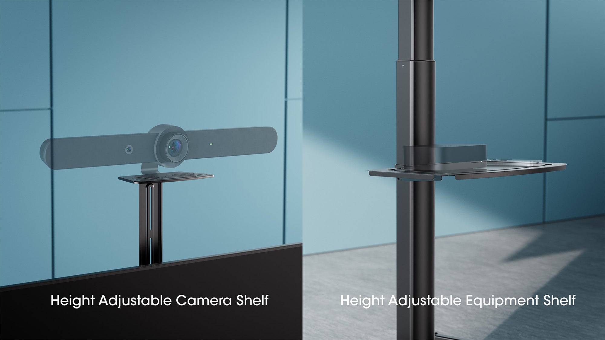 Supportant des motifs VESA de 200x200 à 600x400, ce chariot est compatible avec une large gamme de téléviseurs et d'écrans. Que vous dirigiez une formation, animiez un appel vidéo ou fassiez une présentation, ce chariot s'adapte facilement à vos besoins.