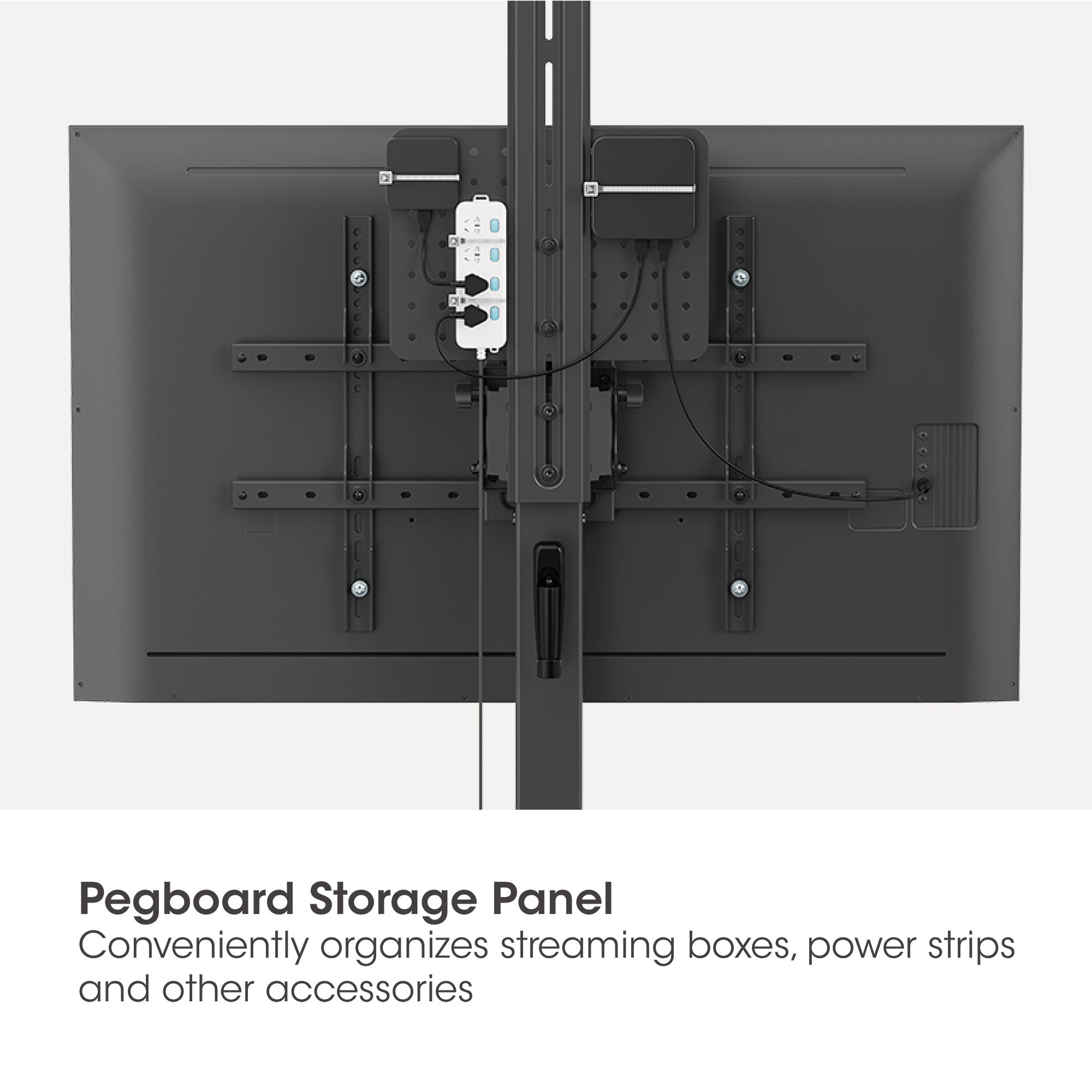 Gardez vos accessoires organisés et à portée de main grâce à l'étagère AV réglable en hauteur pour ordinateurs portables, lecteurs multimédias ou télécommandes. Une étagère pour caméra montée en haut la rend idéale pour les vidéoconférences, tandis que le panneau perforé intégré offre un espace de montage pour des appareils de streaming, des multiprises ou d'autres équipements.