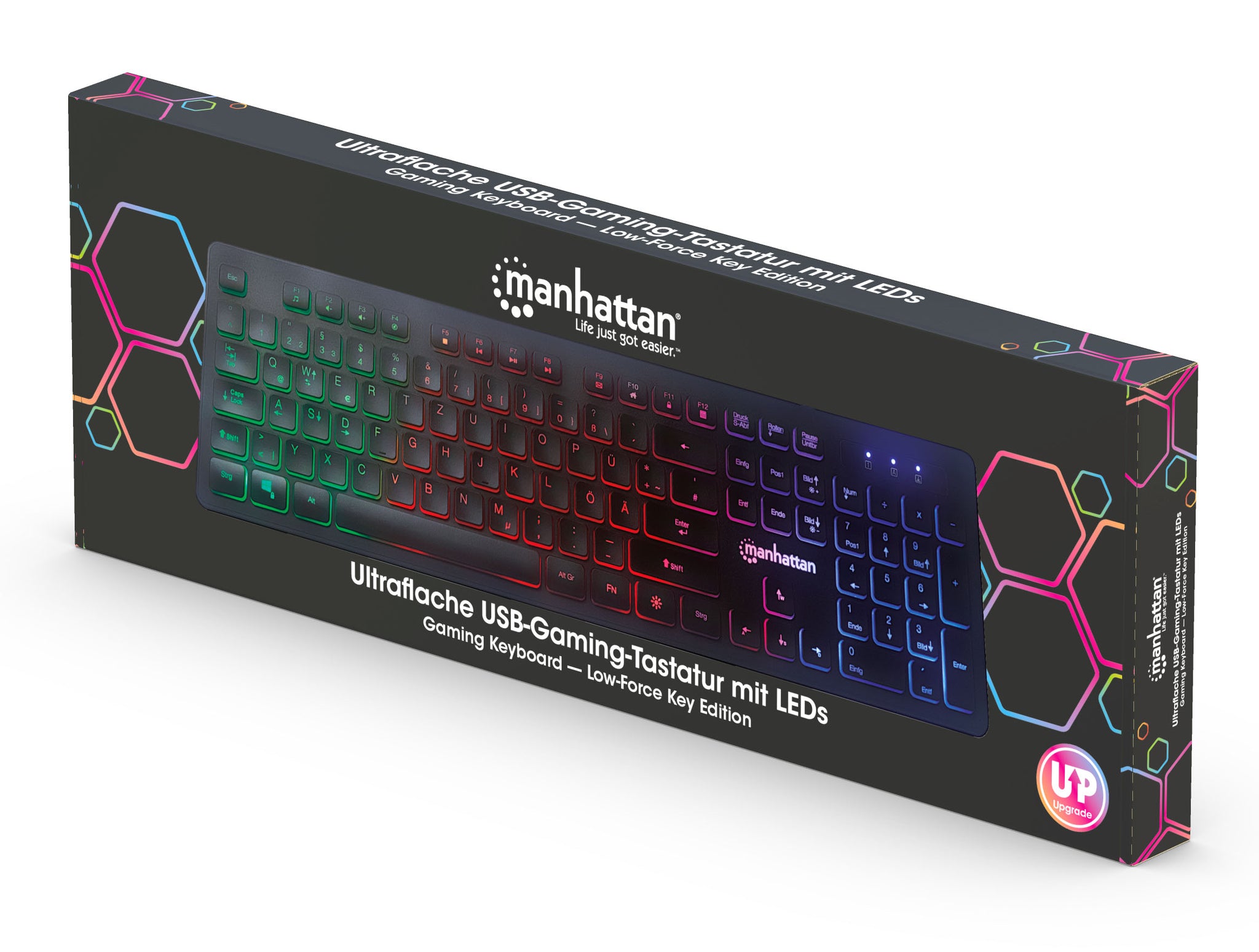 12 touches multimédia / fonction, USB, rétroéclairage LED arc-en-ciel, indicateurs LED de nombre, de défilement et de verrouillage, noire