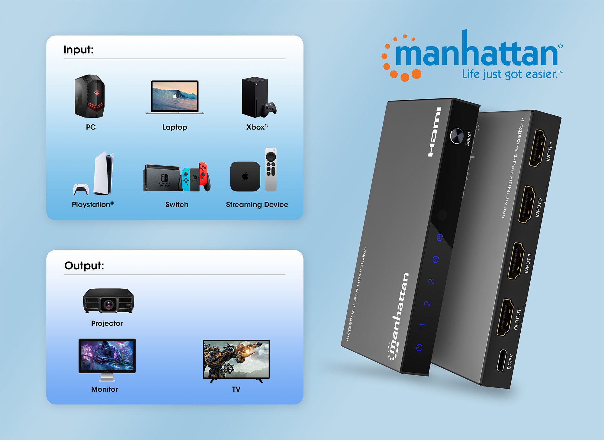 - Compatible avec n'importe quel périphérique HDMI - téléviseurs, projecteurs, moniteurs, ordinateurs portables, PC, récepteurs AV, boîtiers de streaming, consoles de jeux, PlayStation® (PS4 / PS5), Xbox® (One / Series S / Series X), lecteurs Blu-ray et plus
