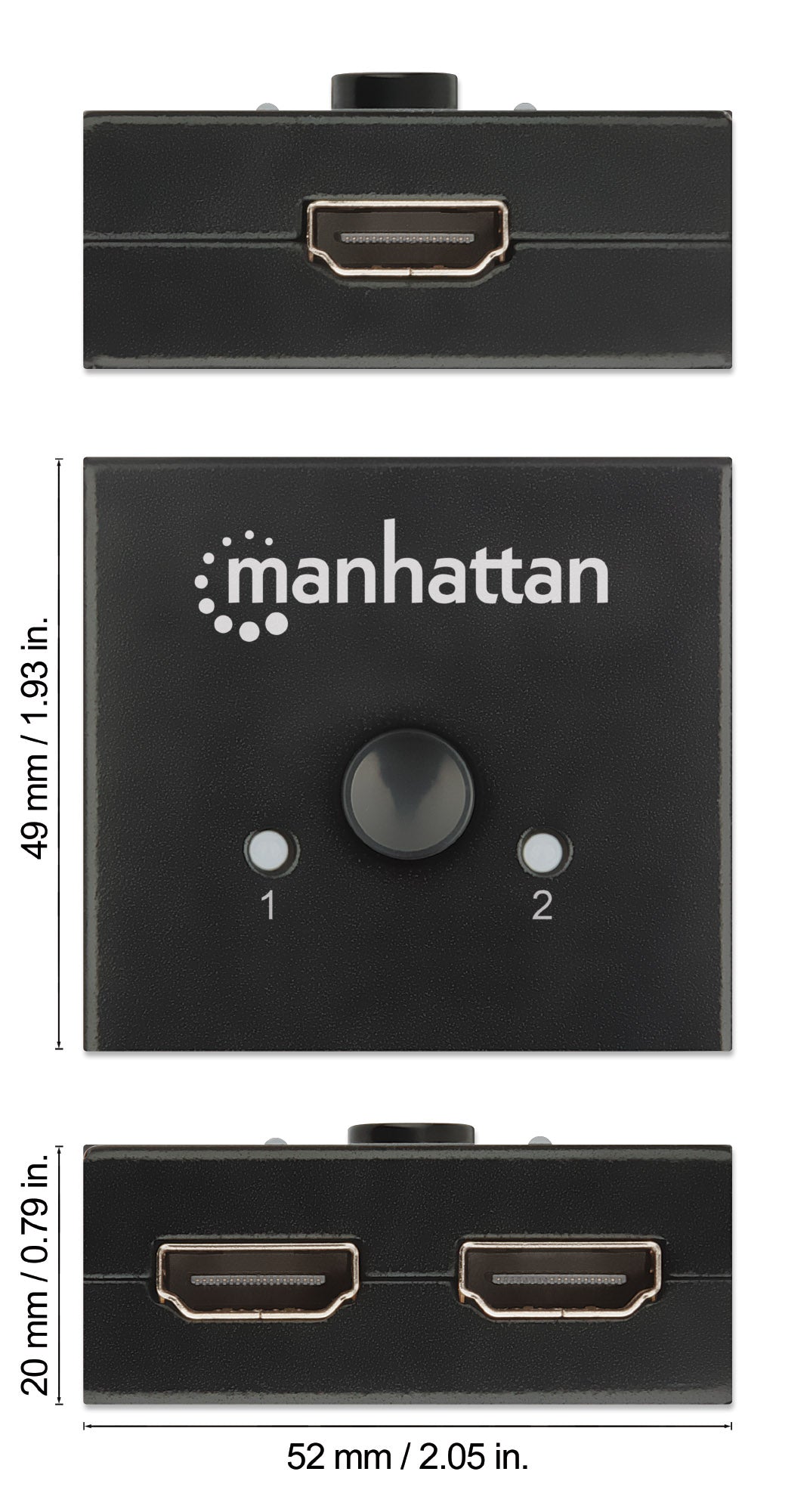 - Distribue un signal numérique audio/vidéo Ultra-Haute-Definition (UHD) vers l’un des deux écrans UHD HDMI, ou permet de basculer entre deux sources sur un même écran