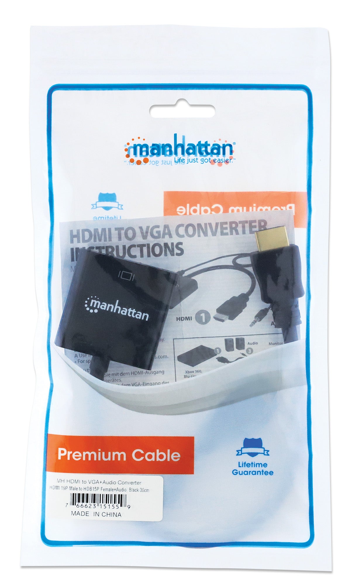 Reliez facilement une source HDMI à un écran VGA.Le convertisseur HDMI/VGA Manhattan permet d'établir une connexion simple, rapide et pratique entre des ordinateurs portables et de bureau récents équipés de la technologie HDMI et autres sources multimédias, et les moniteurs, projecteurs et autres dispositifs d'affichage VGA existants. Le convertisseur HDMI/VGA Manhattan est facile et rapide à installer ; il ne nécessite aucune installation ou configuration complexe pour prolonger le fonctionnement et rentabiliser pleinement la valeur ajoutée des écrans, projecteurs et autres équipements VGA traditionnels. Cette solution de faible puissance, fiable et rentable permet aux utilisateurs de passer, entre autres, aux bandes passantes et résolutions HDMI, ainsi qu'à la technologie Deep Color sans avoir à se procurer des écrans et des projecteurs onéreux plus récents. Sa conception intégrée tout-en-un en fait une solution intégrée compacte qui évite les torsions et les encombrements de cordons dans les installations et les espaces de travail. Grâce à son port stéréo 3,5 mm, le convertisseur peut transmettre des signaux audio à un périphérique audio externe avec le câble audio de 3,5 mm pratique inclus.