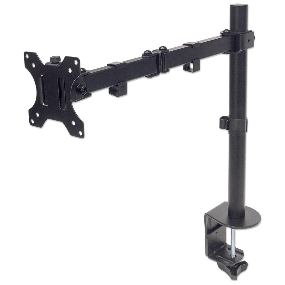 Gérez le bureau. Maximisez la productivité. L'installation d'un moniteur LCD au-dessus du bureau aide à maximiser l'efficacité d'un espace de travail potentiel. Le support de moniteur universel Manhattan avec bras articulé double améliore l'organisation sur le bureau, facilitant ainsi le travail sur l'ordinateur.Construit en acier durable, ce support de moniteur simple dispose d'un serre-joint robuste qui permet un montage rapide, facile et sécurisé sans avoir besoin de percer des trous dans les bureaux ou les plans de travail. Accompagnant efficacement un écran ou un moniteur plus grand, ses réglages d'inclinaison, de rotation, de latéralité, de hauteur et de tension entièrement ajustables créent la position parfaite pour augmenter le confort et la productivité. De telles capacités d'ajustement peuvent même aider à réduire la fatigue oculaire ou les tensions au cou et au dos. De plus, le mât du support permet une rotation facile du moniteur pour permettre à d'autres de visionner des présentations et des productions multimédias sous presque n'importe quel angle.