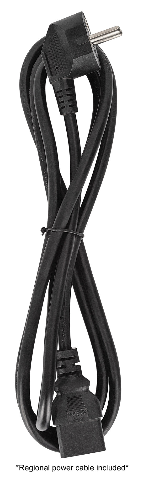 - Entrée AC universelle avec connecteur C20 ; câble d'alimentation C19 vers CEE 7/4 EU inclus, peut être échangé pour différentes versions régionales