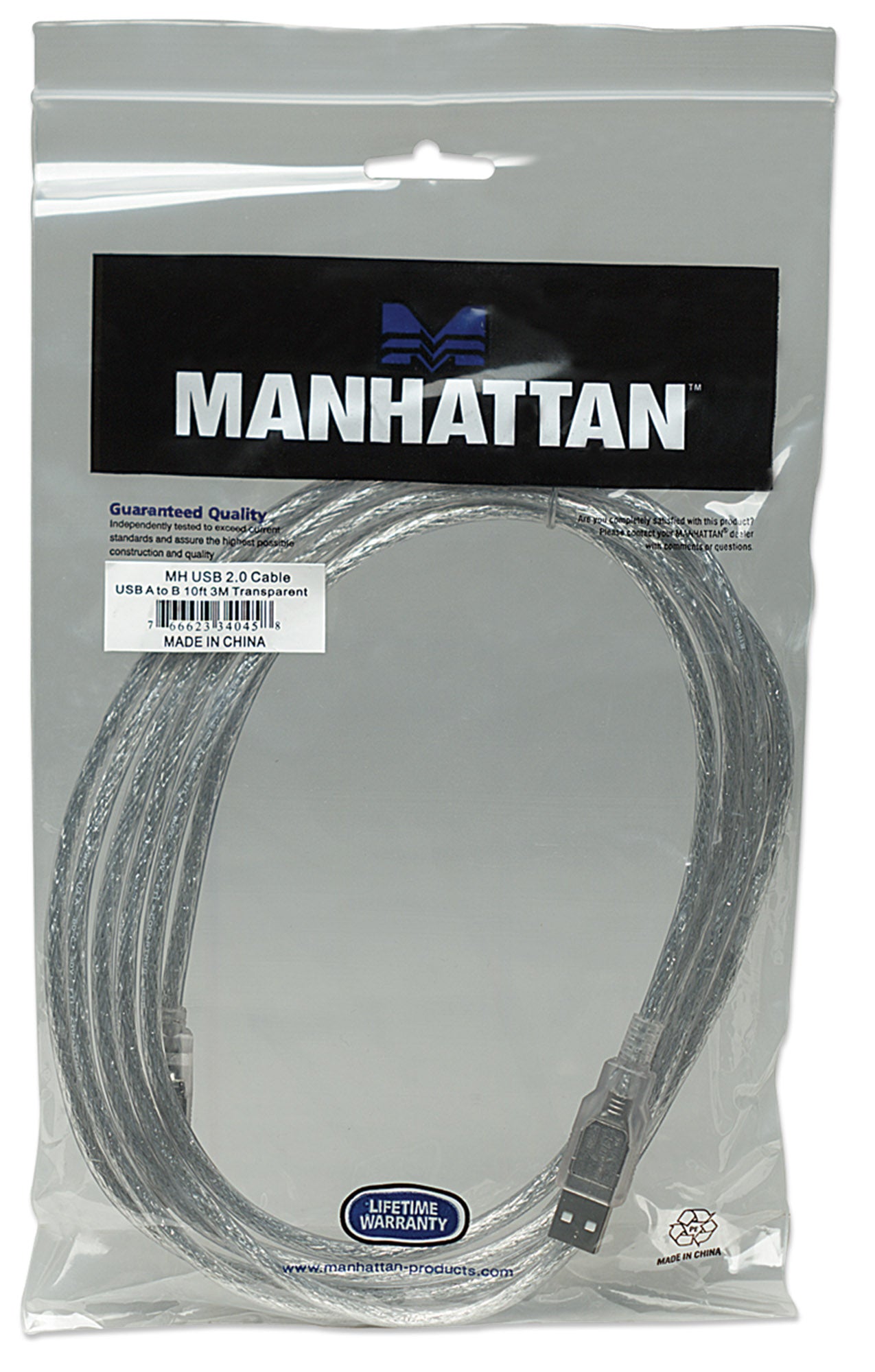 USB 2.0, Type A mâle vers Type B mâle, 480 Mbps, 3 m, Argent