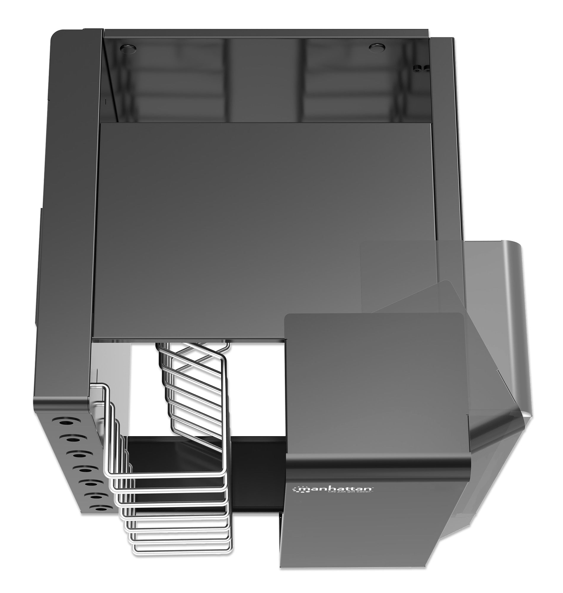 - Sept emplacements spacieux pour appareils, 402 (L) x 290 (l) x 50 (H) mm chacun, avec gestion des câbles intégrée dans les séparateurs