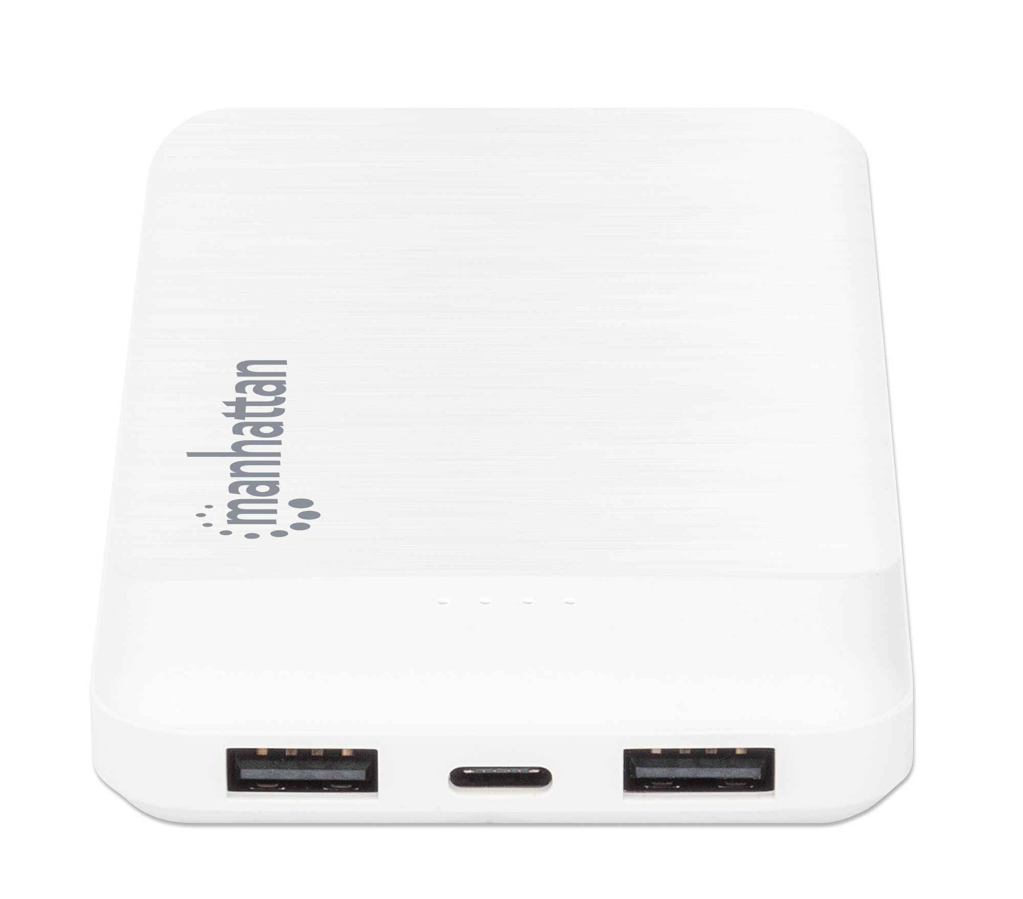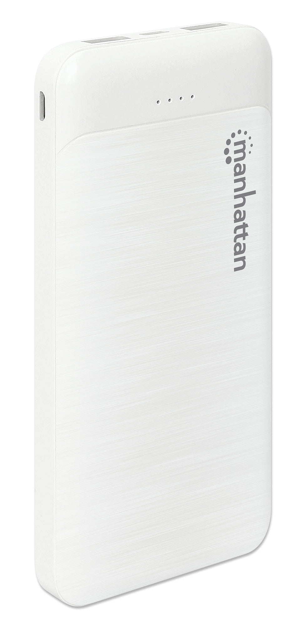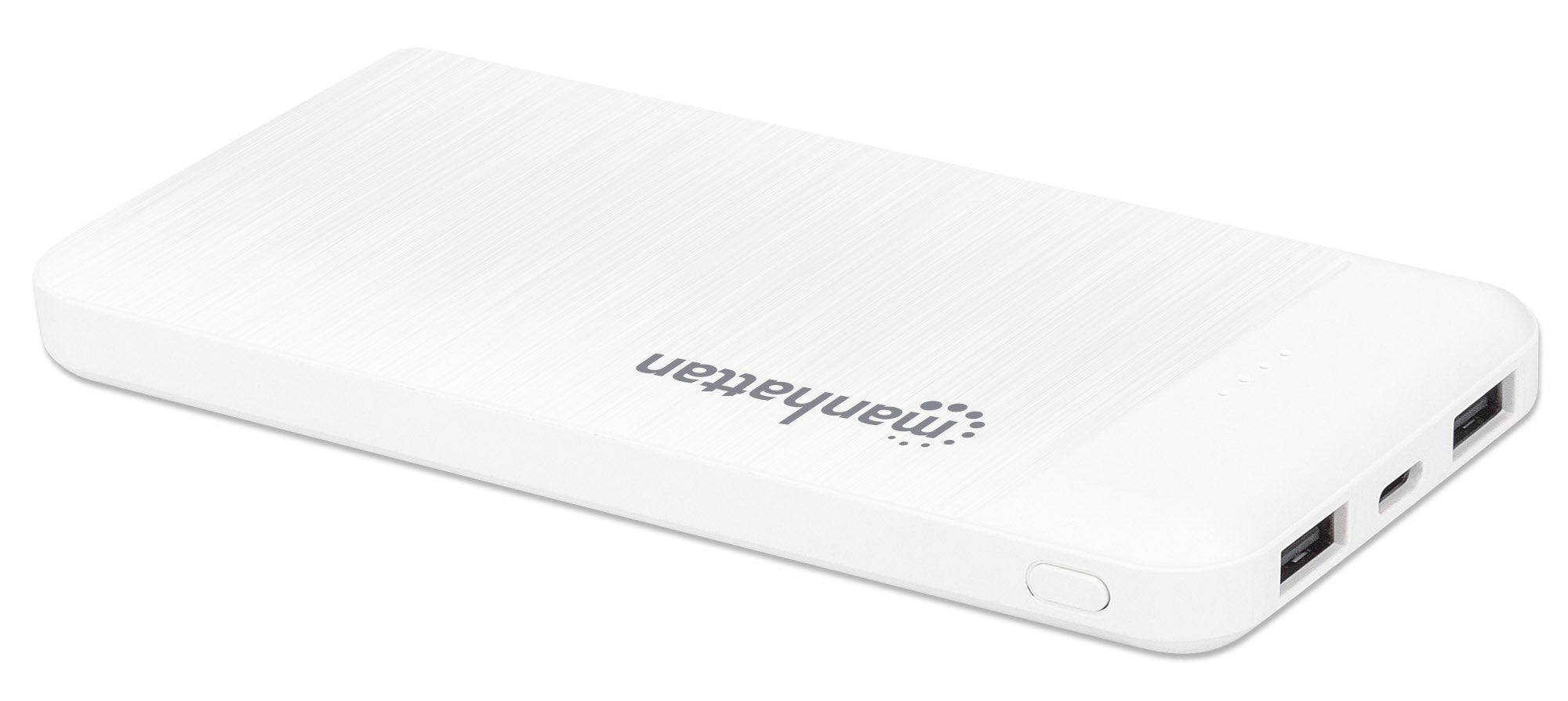 Deux ports USB-A sortie (2,1 A et 1 A), deux ports entrée (USB-C et Micro-USB, 2 A chacun), 10 000 mAh, blanc