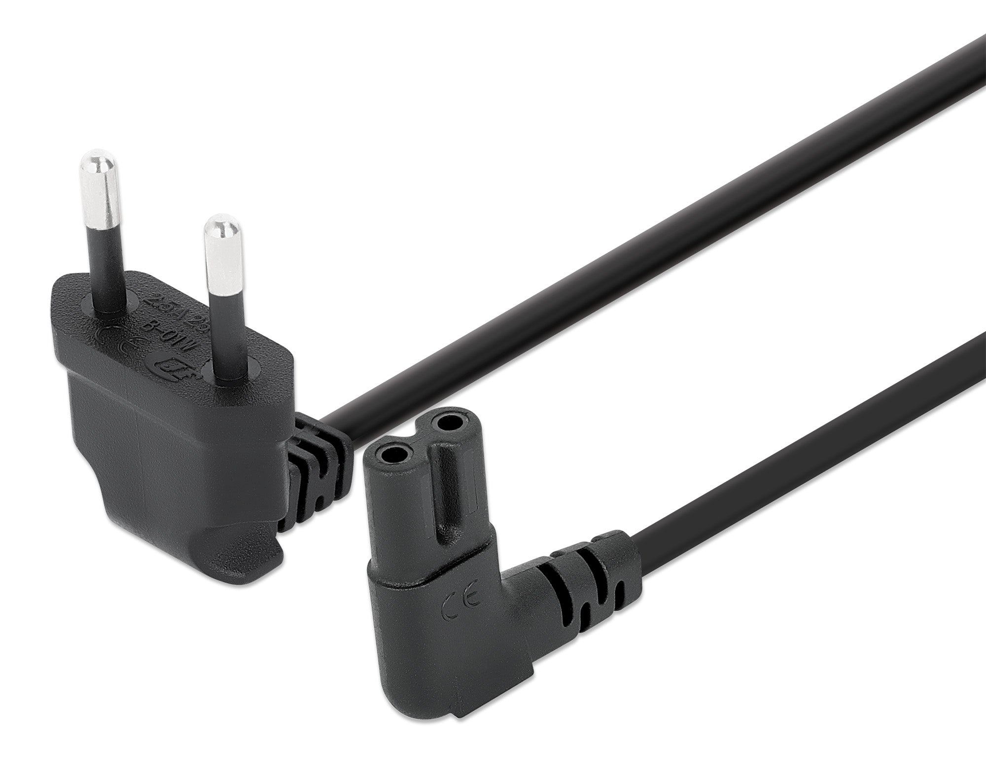 Cordon d'alimentation CA avec "Euro 8" vers prise secteur européenne à 2 broches, angle de 90°, 2,5 A, 250 V, pour adaptateurs secteur de portable et petits appareils, noir