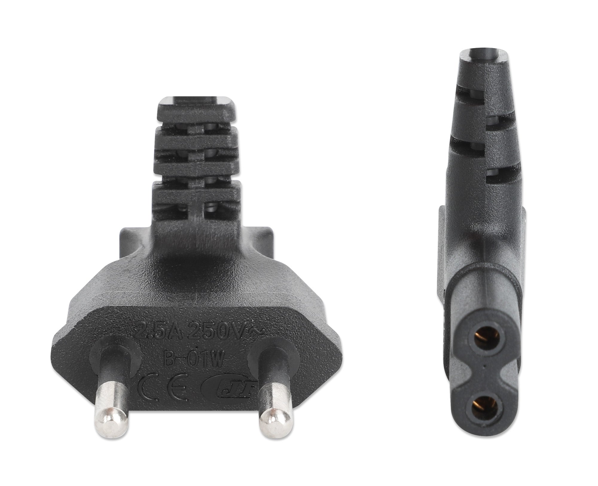 Le câble d'alimentation angulaire EU Manhattan (C7 à CEE 7/16) est la solution parfaite pour fournir une alimentation CA sûre et fiable à vos appareils électroniques compacts. Avec ses prises angulaires à 90° à chaque extrémité, ce câble est conçu pour les espaces restreints - idéal pour une utilisation derrière des bureaux, des armoires ou des unités de divertissement où les connecteurs droits ne s'adaptent tout simplement pas.