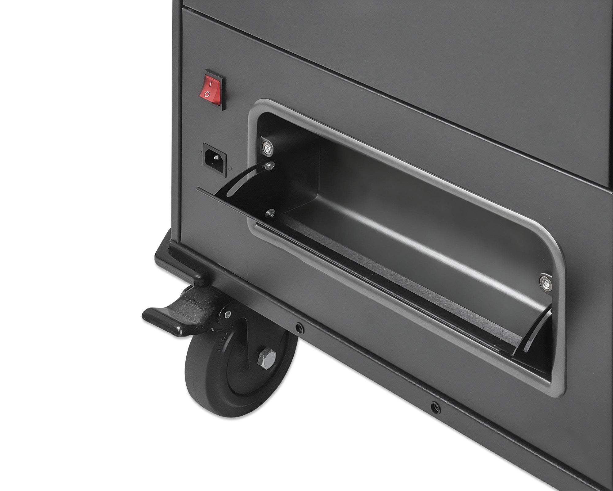 - Quatre roulettes lourdes amovibles, deux avec freins