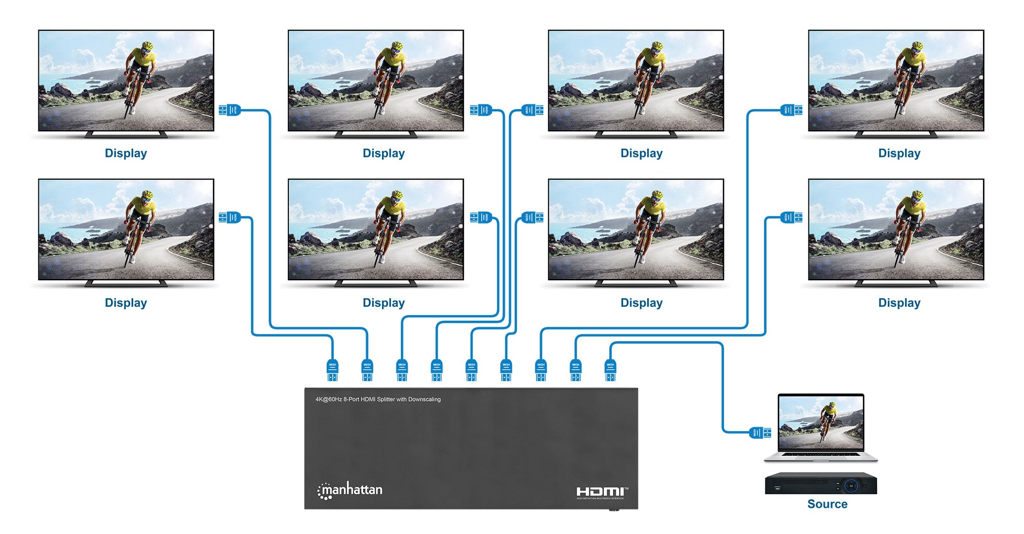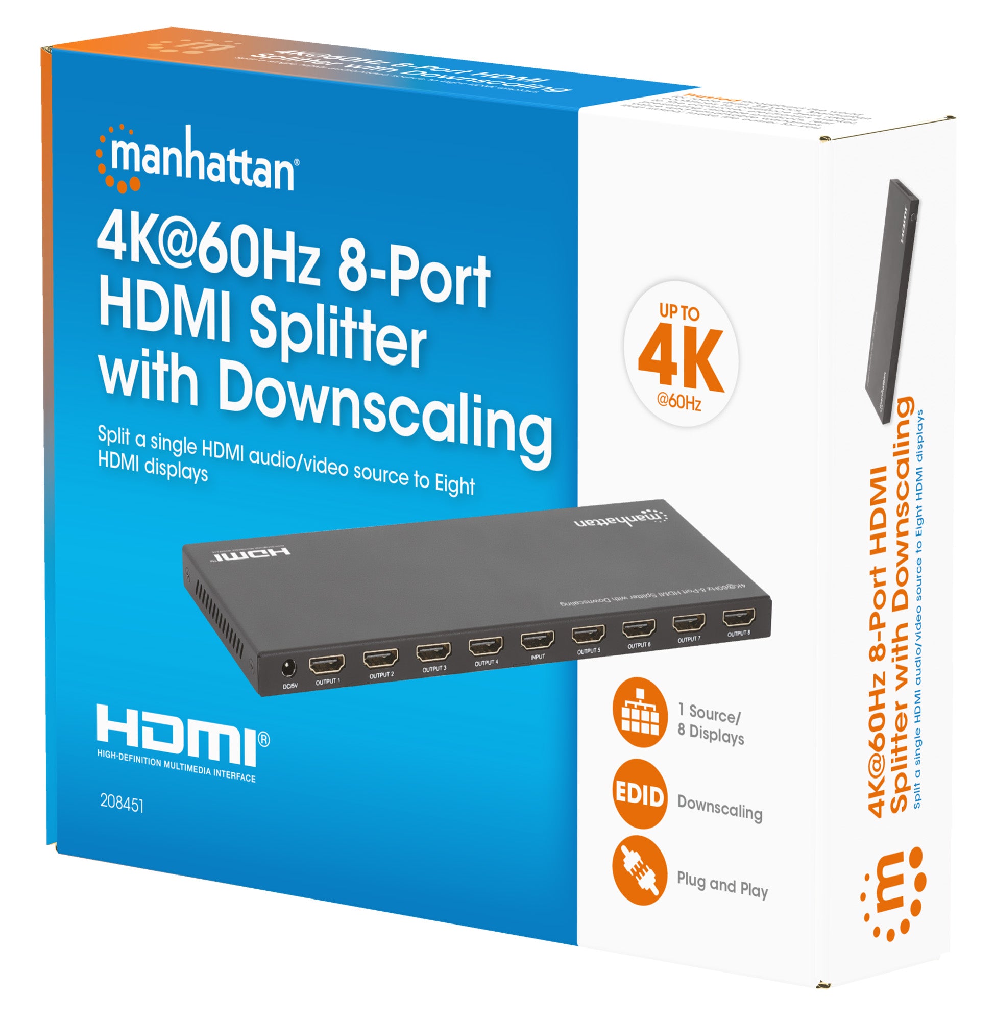 Le répartiteur HDMI 4K@60Hz 8 ports de Manhattan divise un signal provenant d'une seule source HDMI vers huit écrans sans déformer ni dégrader votre vidéo.