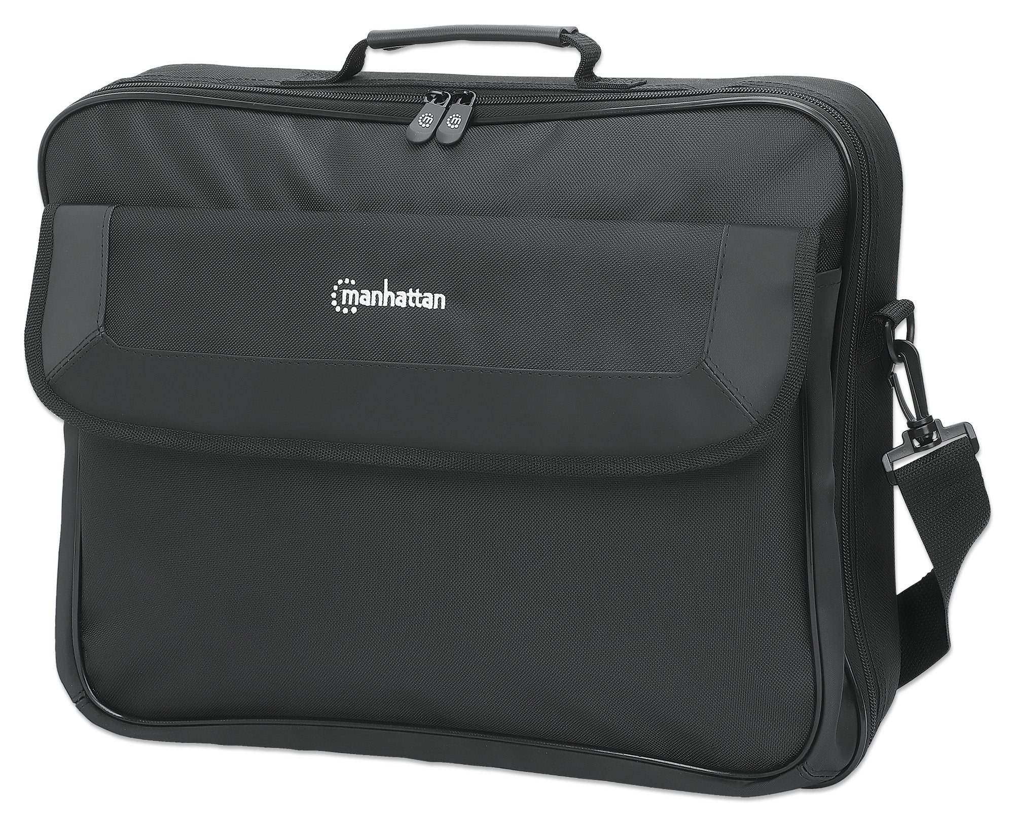 Ouverture à plat, adapté à la plupart des ordinateurs portables jusqu'à 43,9 cm (17,3 po), compartiment pour ordinateur matelassé, poches sur le devant, arrière et intérieure, bandoulière, poignée, noir