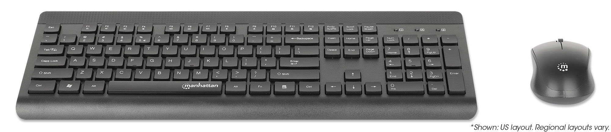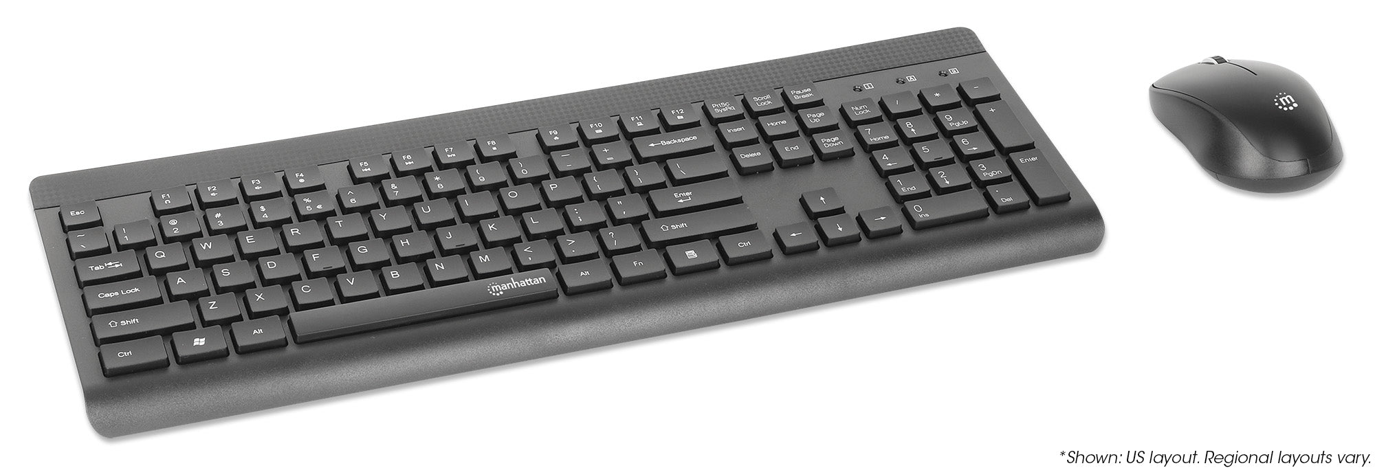 Un seul récepteur USB-A Nano pour les deux, clavier sans fil de grande taille avec 12 touches multimédia/fonctionnelles, souris optique ambidextre avec trois boutons et molette de défilement, 1200 ppp, noir