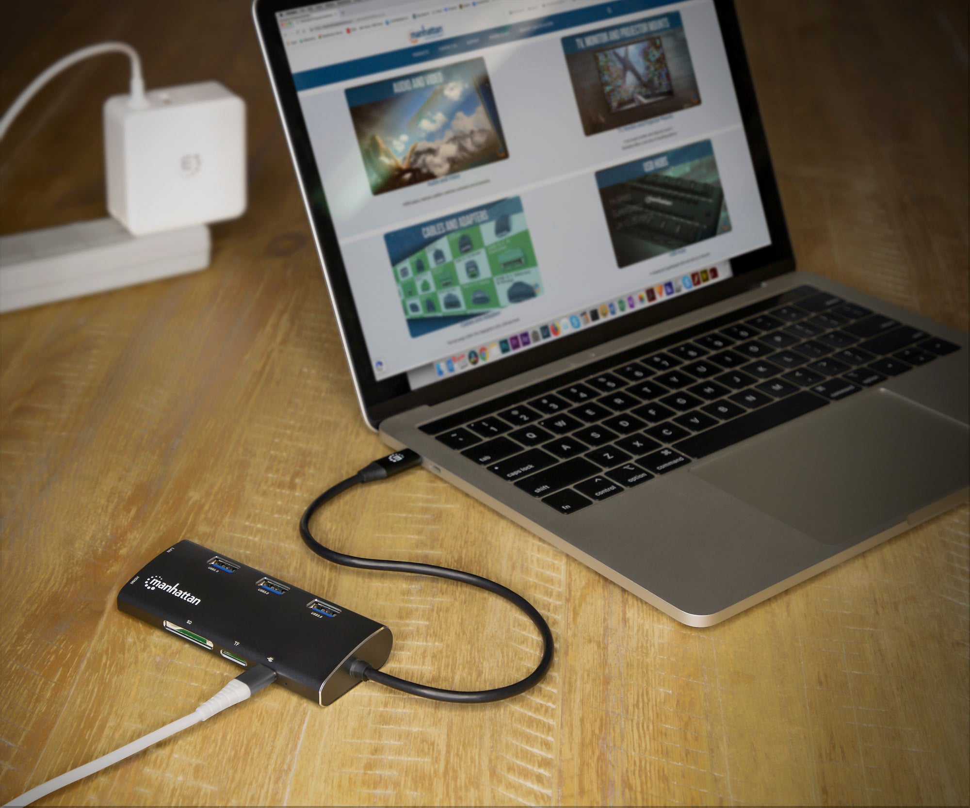- Prend en charge la fonction USB Power Delivery (PD) jusqu'à 100 W; nécessite un chargeur PD externe - disponible de Manhattan