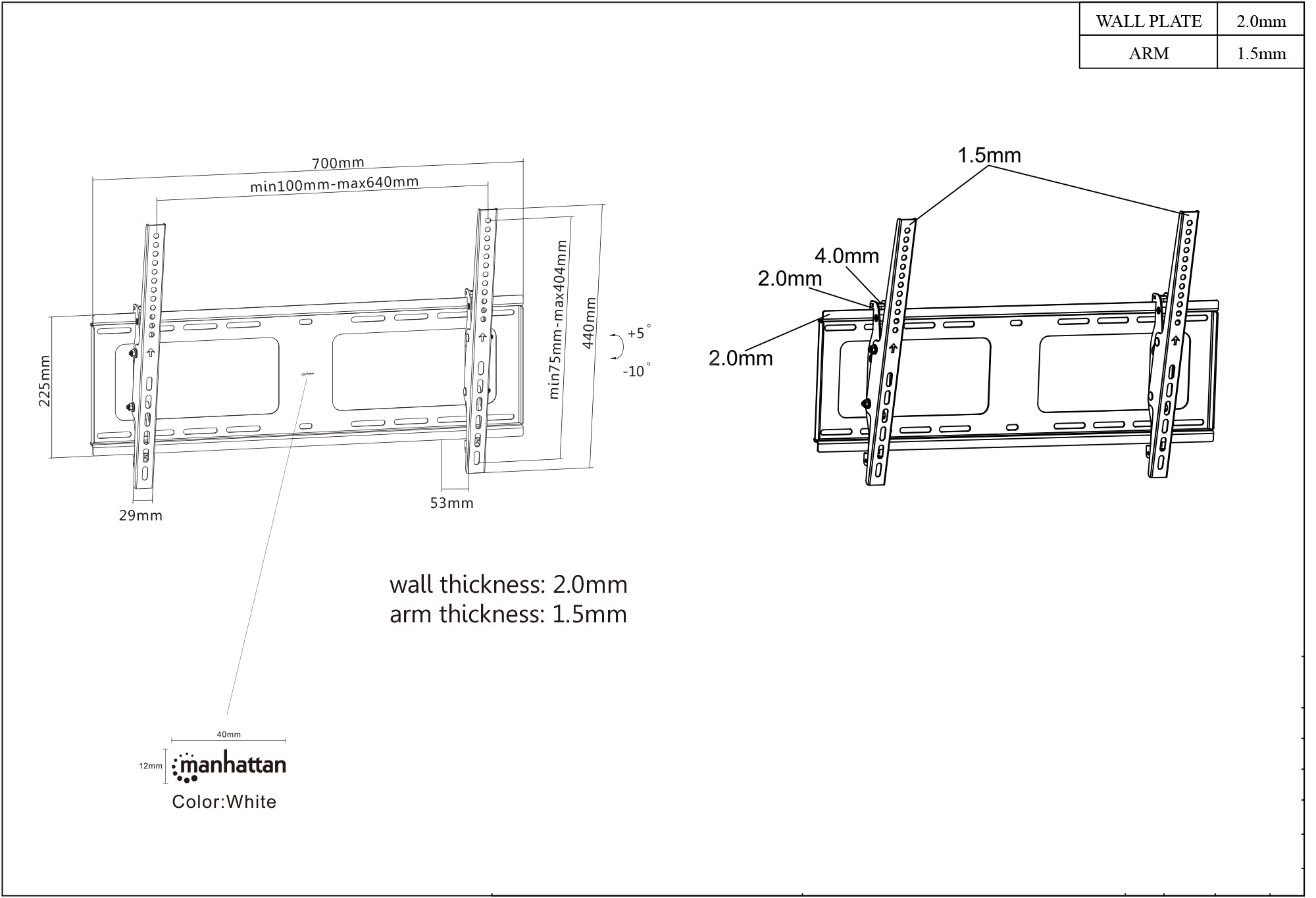 - Accueille les écrans VESA de 200 x 200, 400 x 200, 300 x 300, 400 x 400, 600 x 400 mm