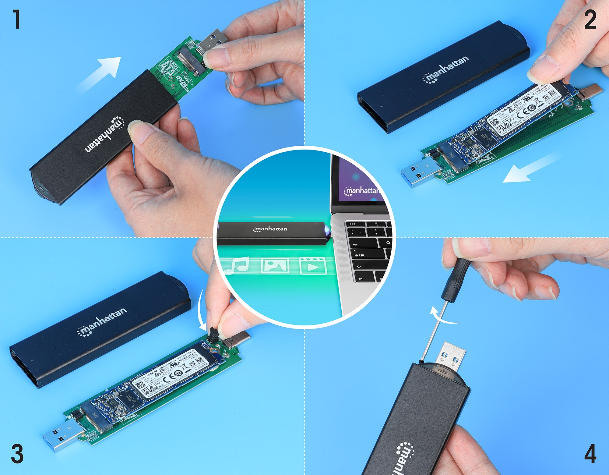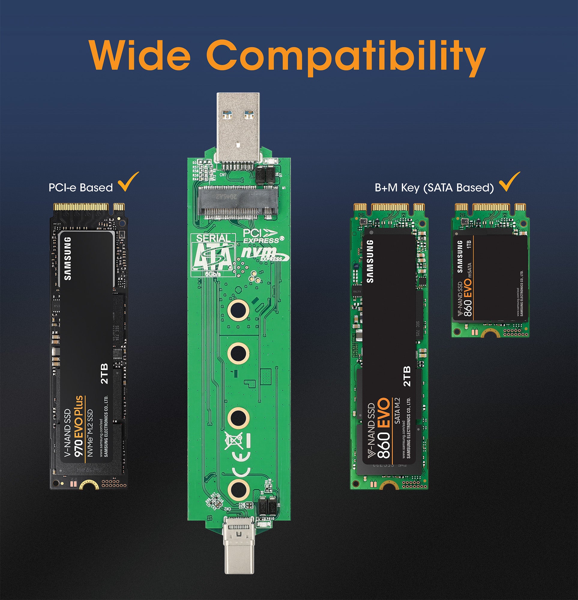 - Compatible avec les disques type M (PCIe NVMe) et type B+M (SATA)