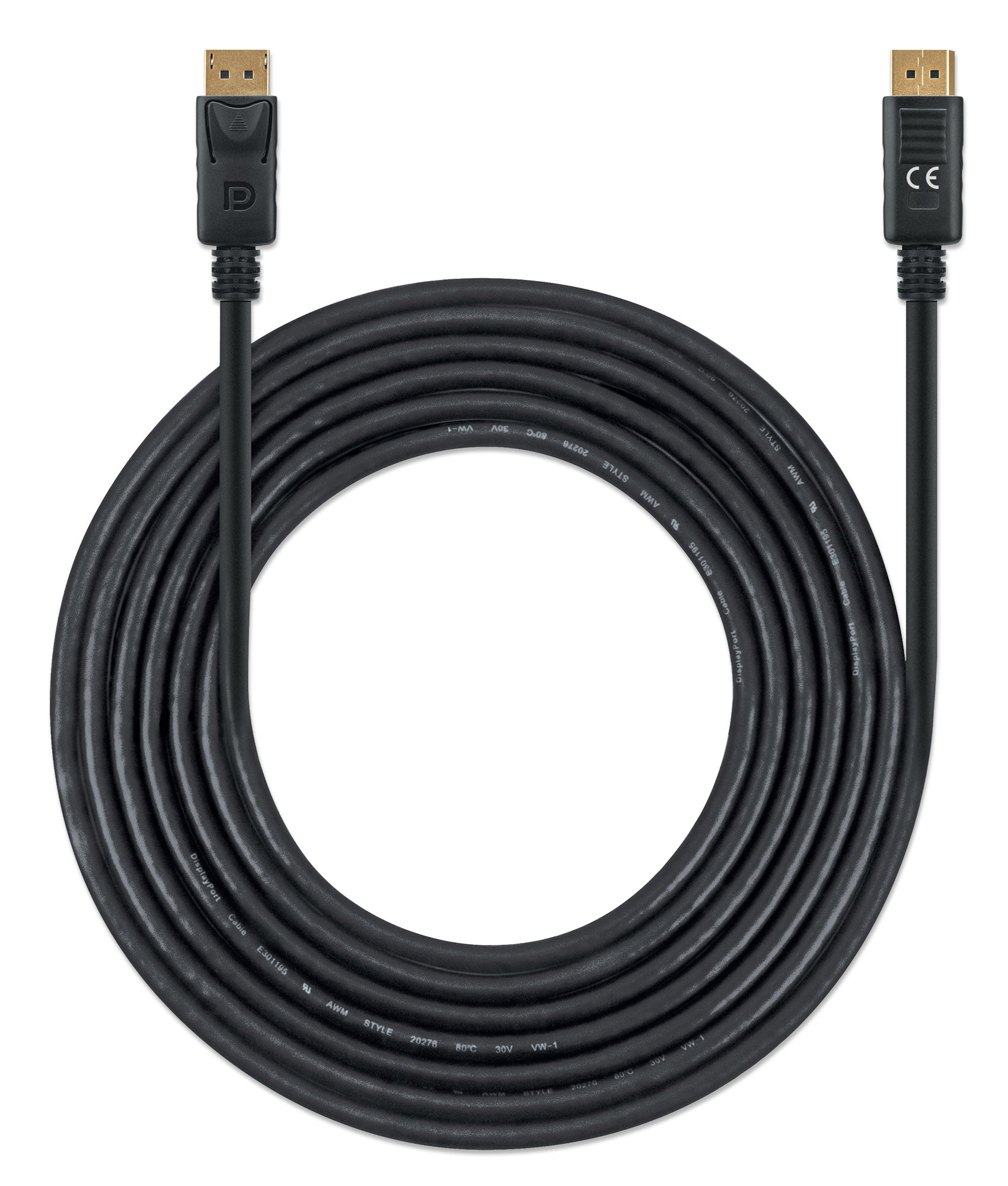 Le câble de moniteur DisplayPort Manhattan vous prépare à relever même les défis graphiques les plus exigeants dans les jeux, la signalisation numérique et d'autres applications AV haut de gamme. Son standard DisplayPort 1.4 supérieur délivre des images en brillant 8K (7680 x 4320) à une fréquence rapide de 60 Hz ou en 4K UHD à une vitesse fulgurante de 144 Hz avec HDR pour un contraste et des couleurs parfaits. Le blindage triple et les contacts plaqués or garantissent une conductivité maximale ainsi que des transmissions de signal nettes et claires sans interférence EMI.