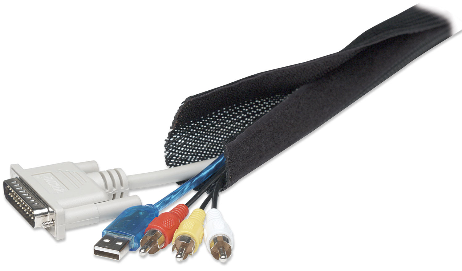 Rassemblez vos câble pour y voir plus clair. Les câbles emmêlés compliquent la résolution des problèmes liés aux armoires de câbles réseau, aux systèmes de divertissement personnel et aux postes de travail informatiques. N'importe qui peut trébucher sur un câble qui traîne, ce qui endommagerait l'équipement auquel il est branché. Cable FlexWrap de Manhattan permet d'éliminer les risques pour les équipements et les câbles.
