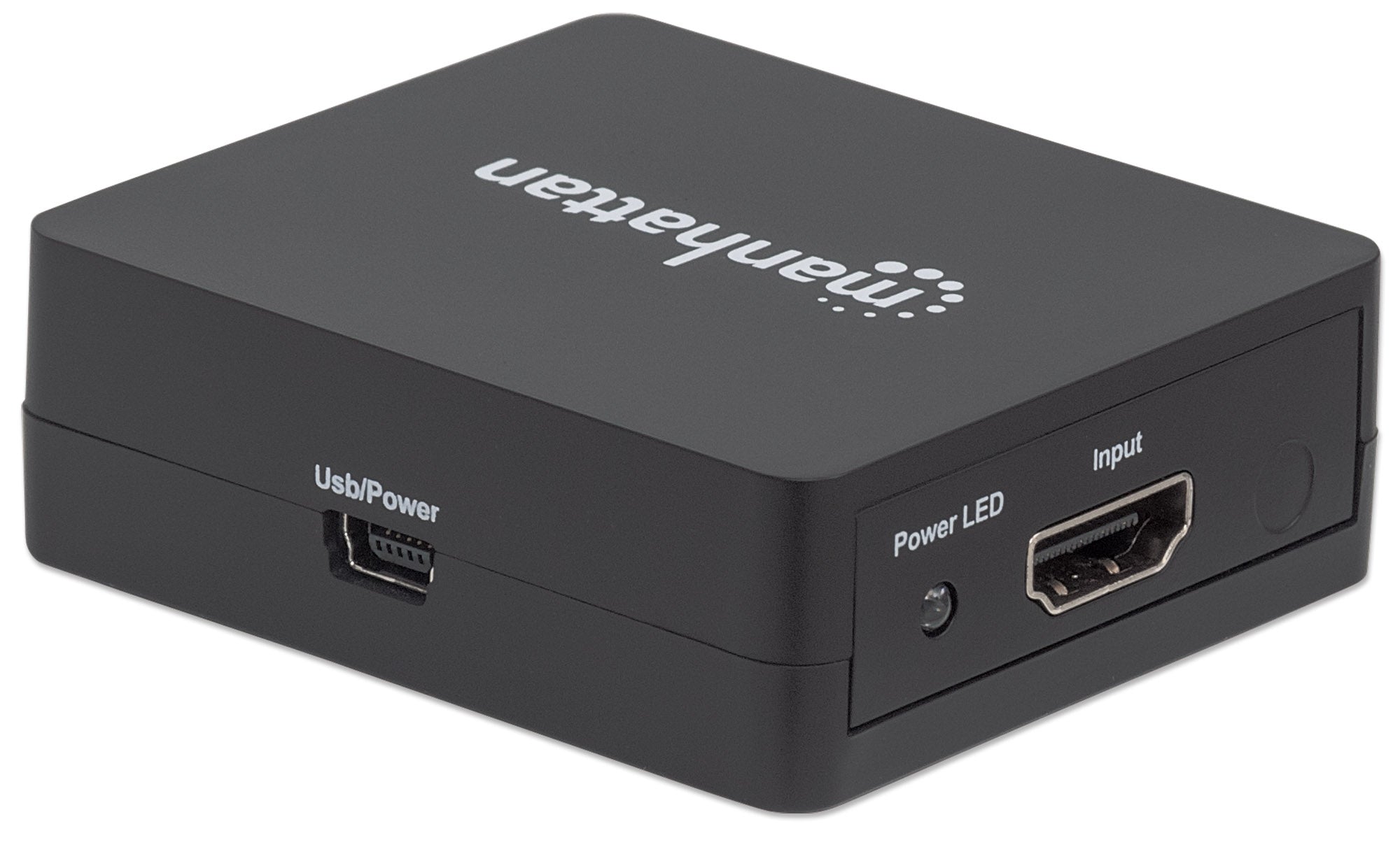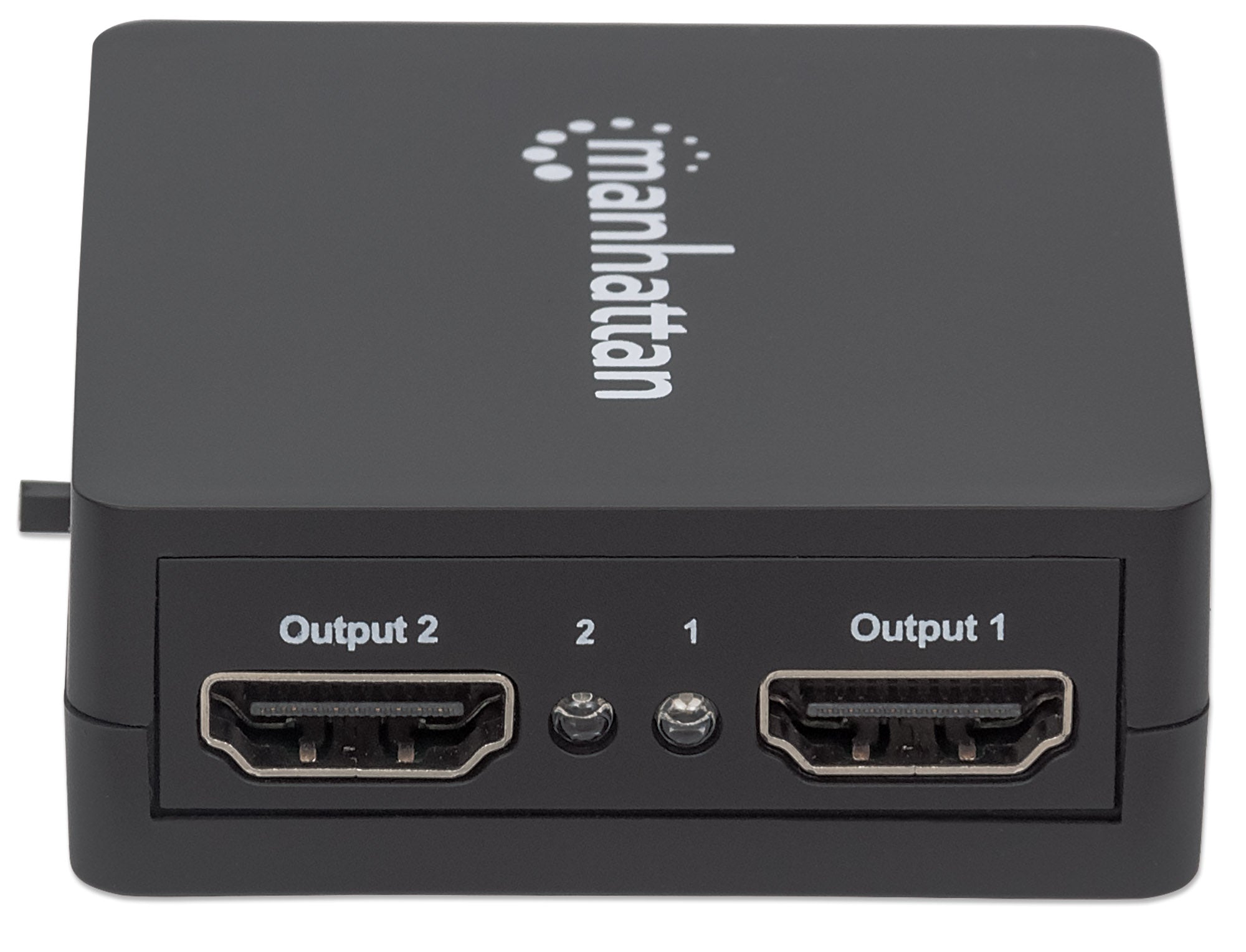 Le répartiteur HDMI 2 ports 1080p de Manhattan envoie des signaux HDMI d'un seul lecteur Blu-ray, récepteur satellite, enregistreur numérique, décodeur, console de jeu ou autre source HDMI vers deux écrans HDMI.